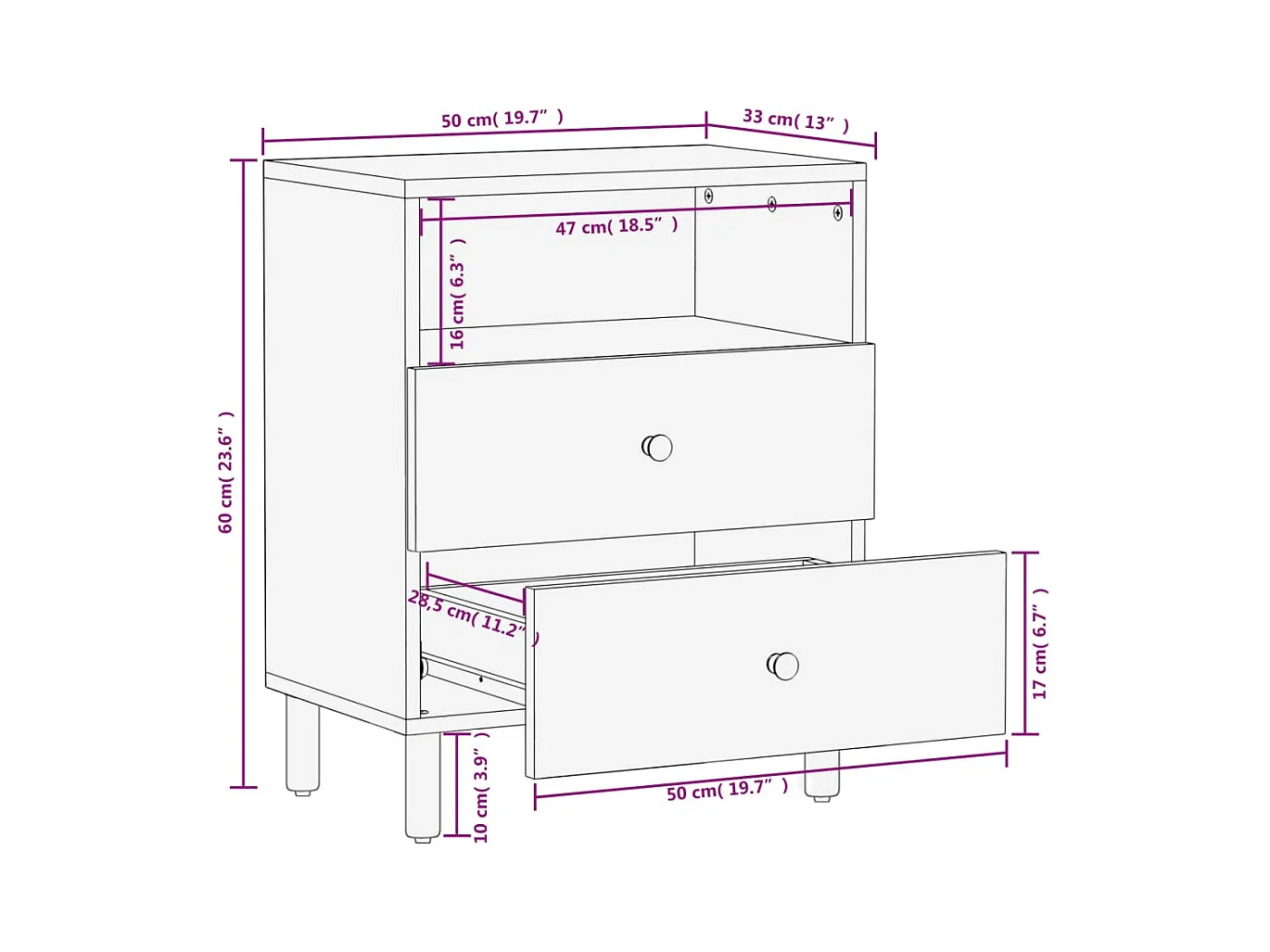 Table de chevet noir 50x33x60 cm bois de manguier massif