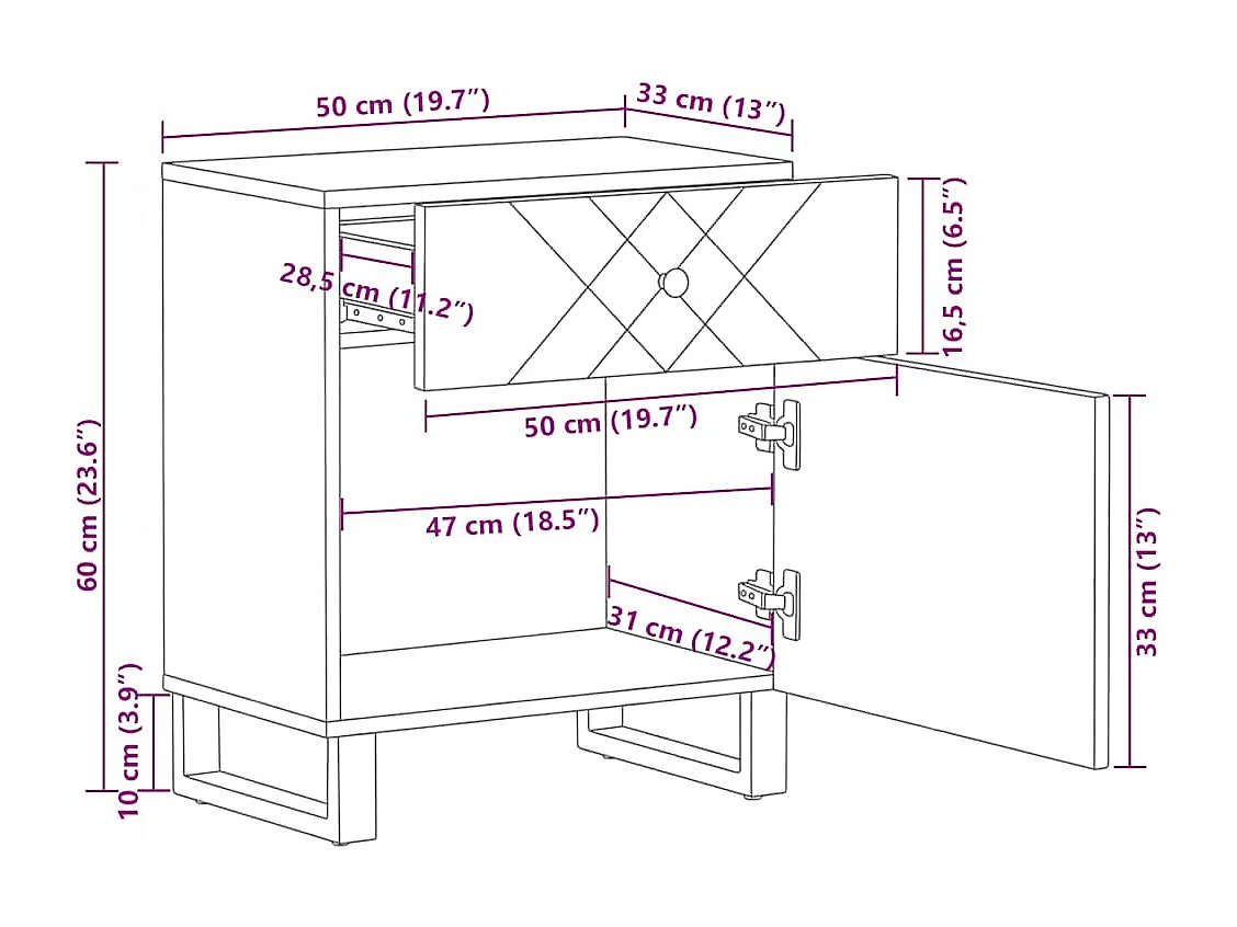 Table de chevet noir 50x33x62 cm bois de manguier solide