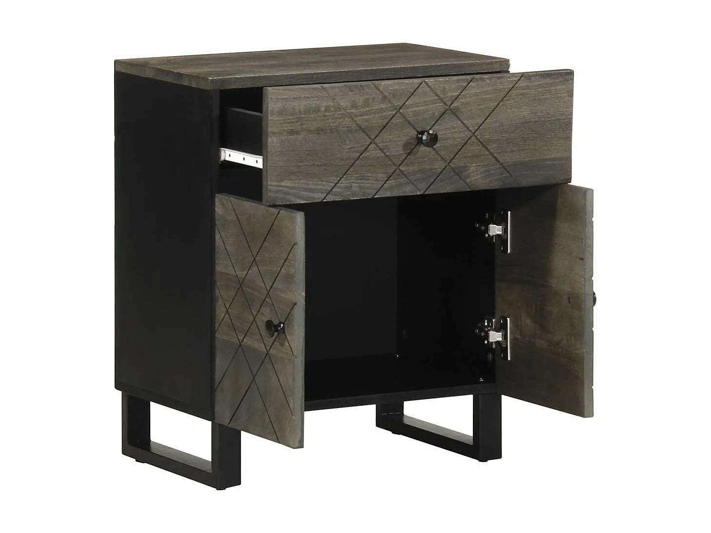 Table de chevet noir 50x33x62 cm bois de manguier massif brut