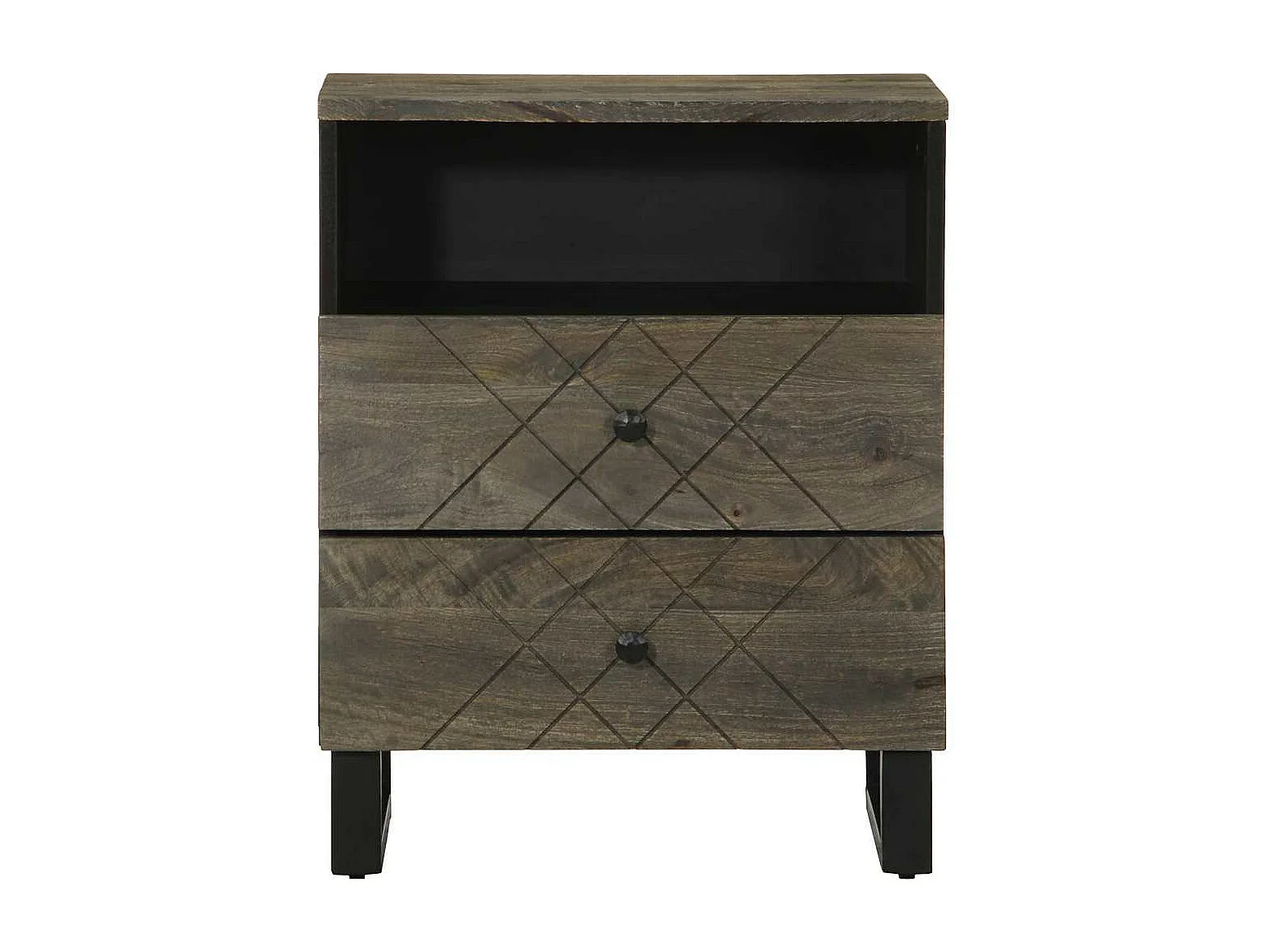Table de chevet noir 50x33x62 cm bois de manguier massif brut