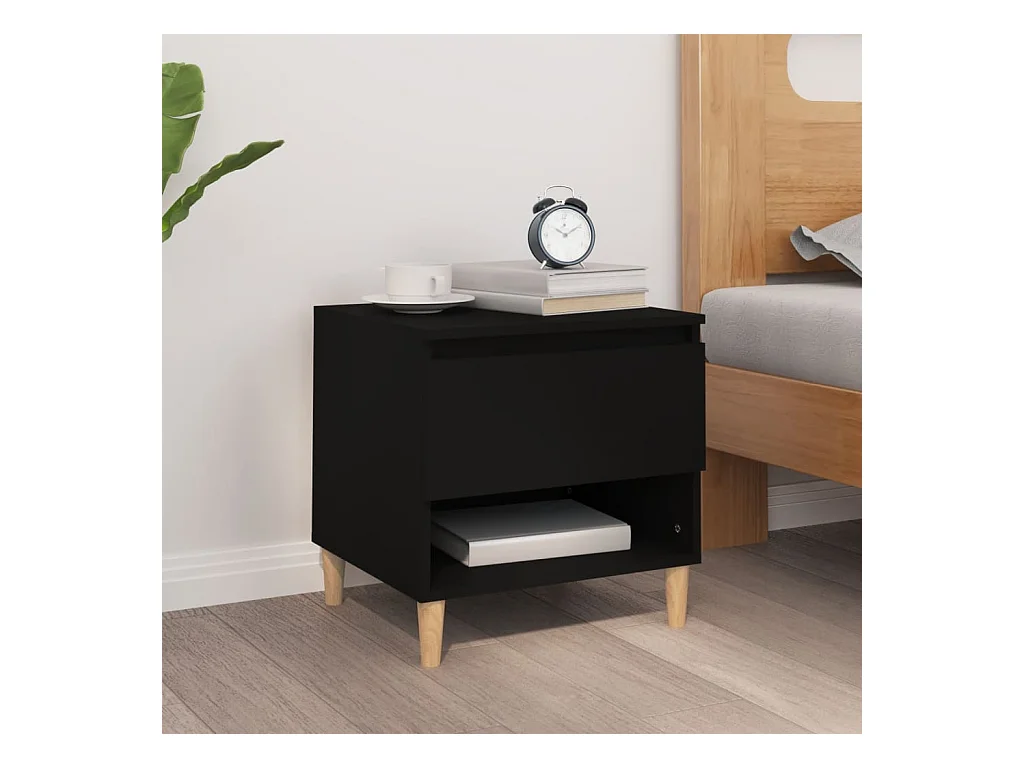 Table de chevet VIKEN noir bois de pin solide