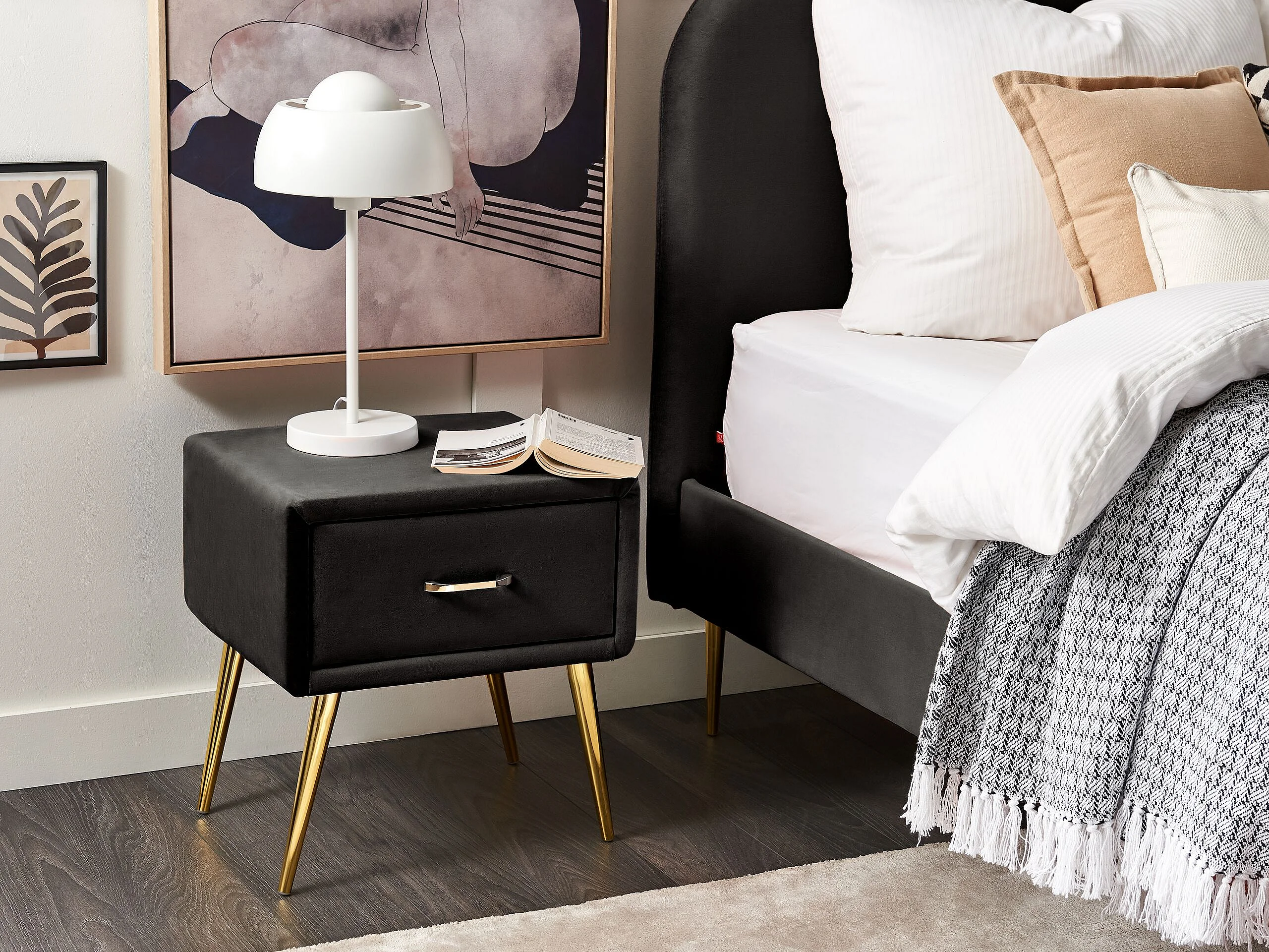 Table de nuit à 1 tiroir FLAYAT Velours Noir
