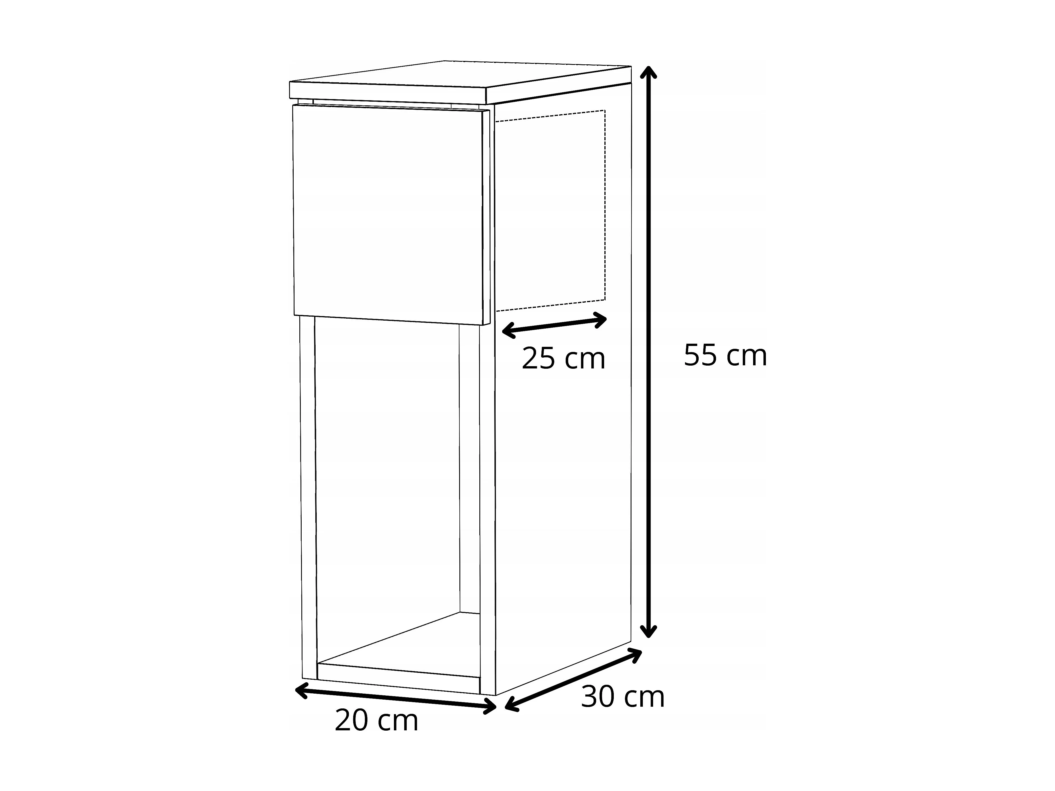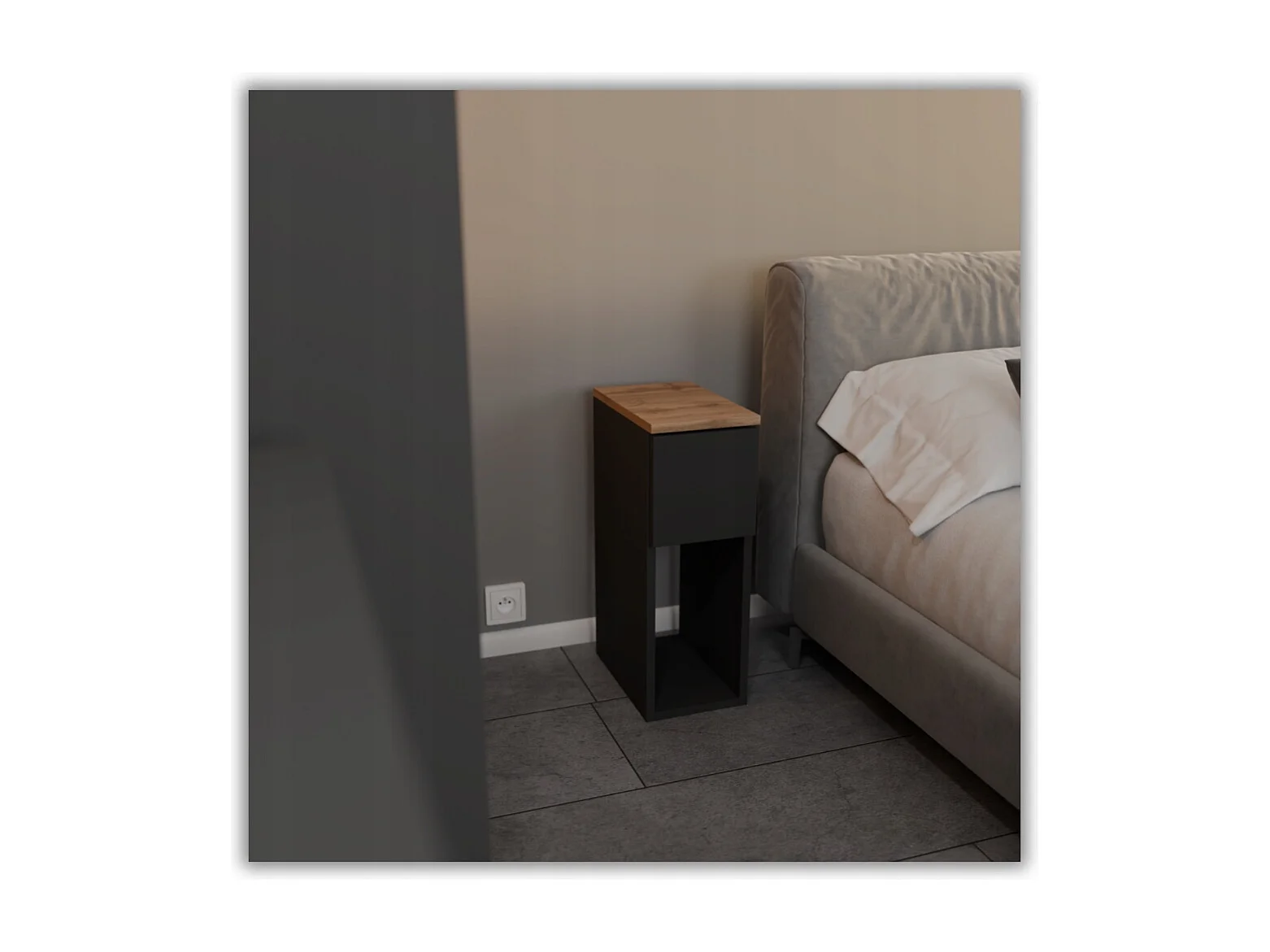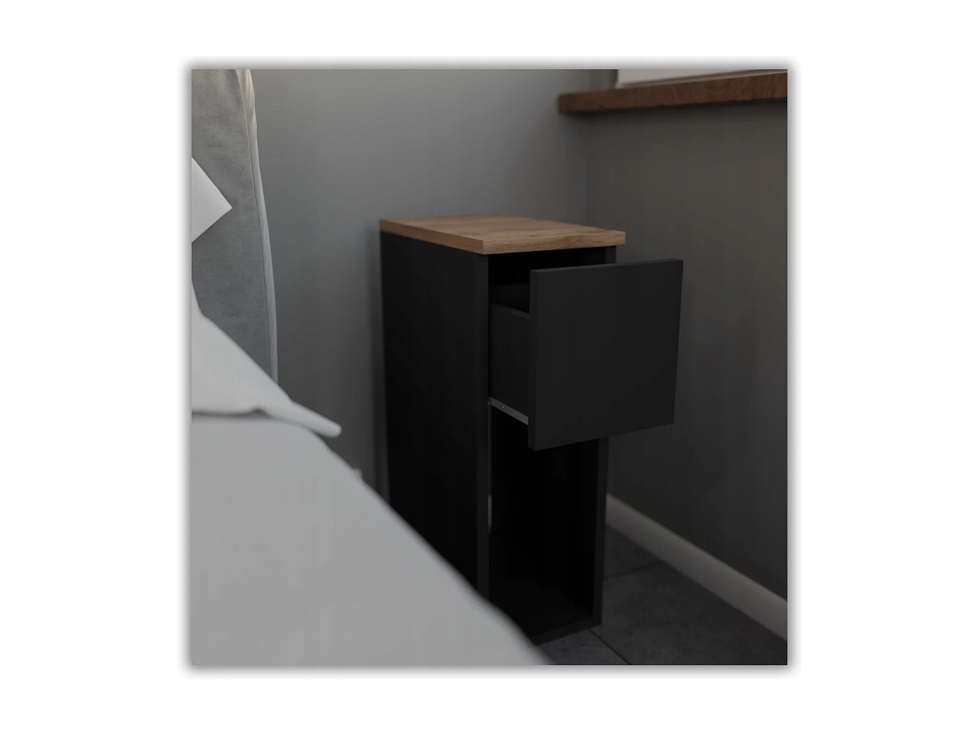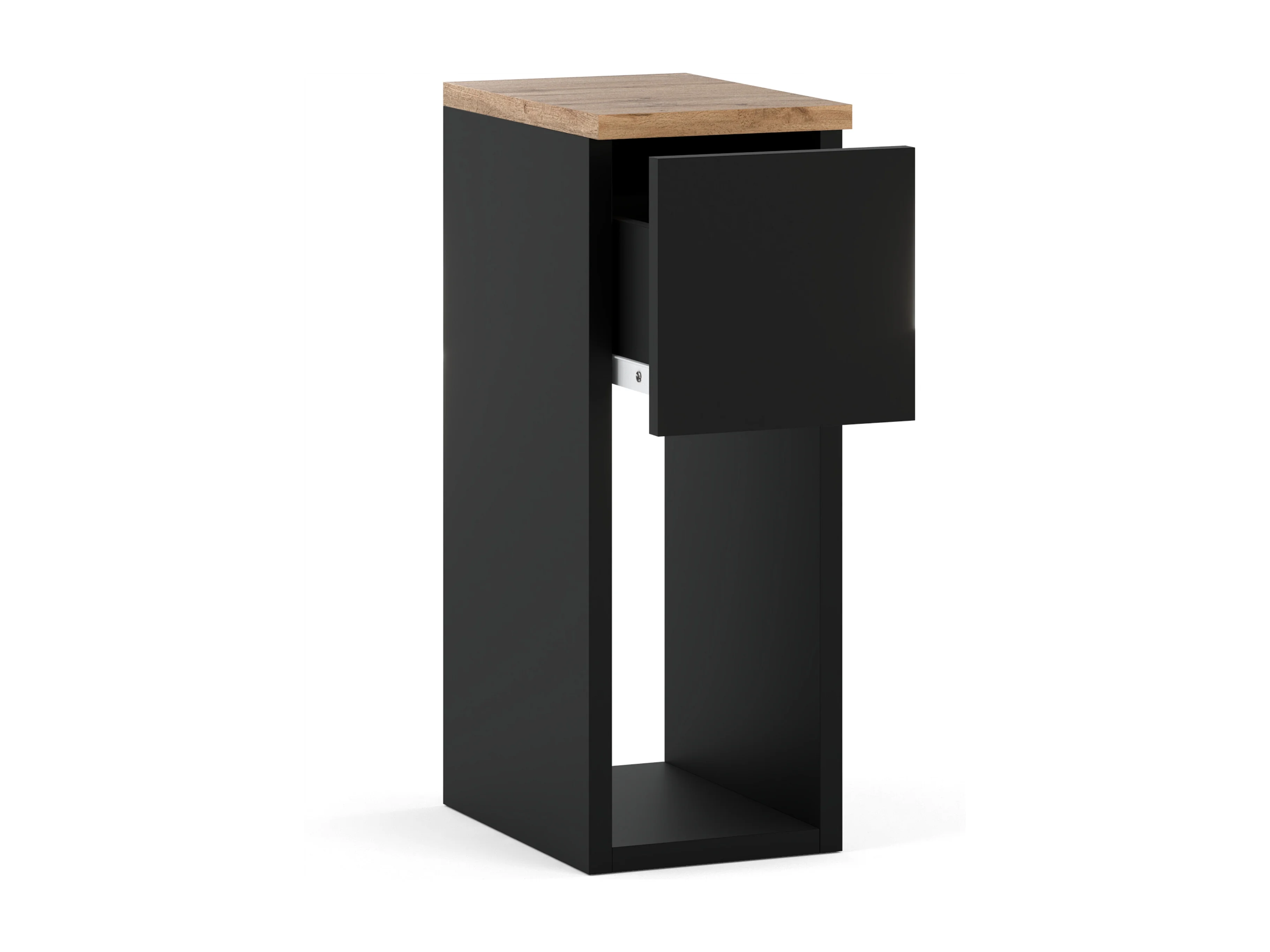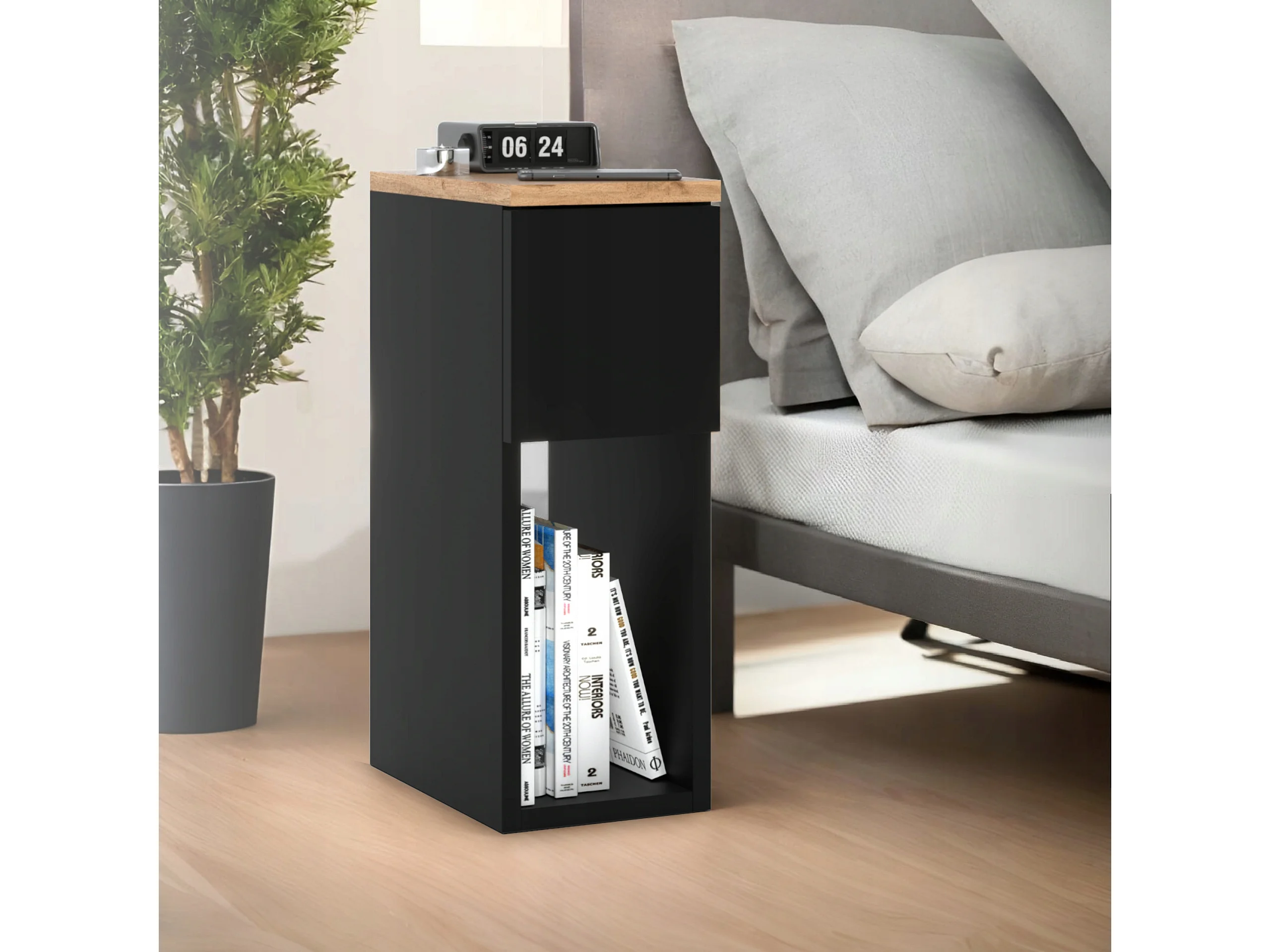 Table de chevet noire et chêne Wotan, étroite 20 cm, petite table de nuit loft compacte