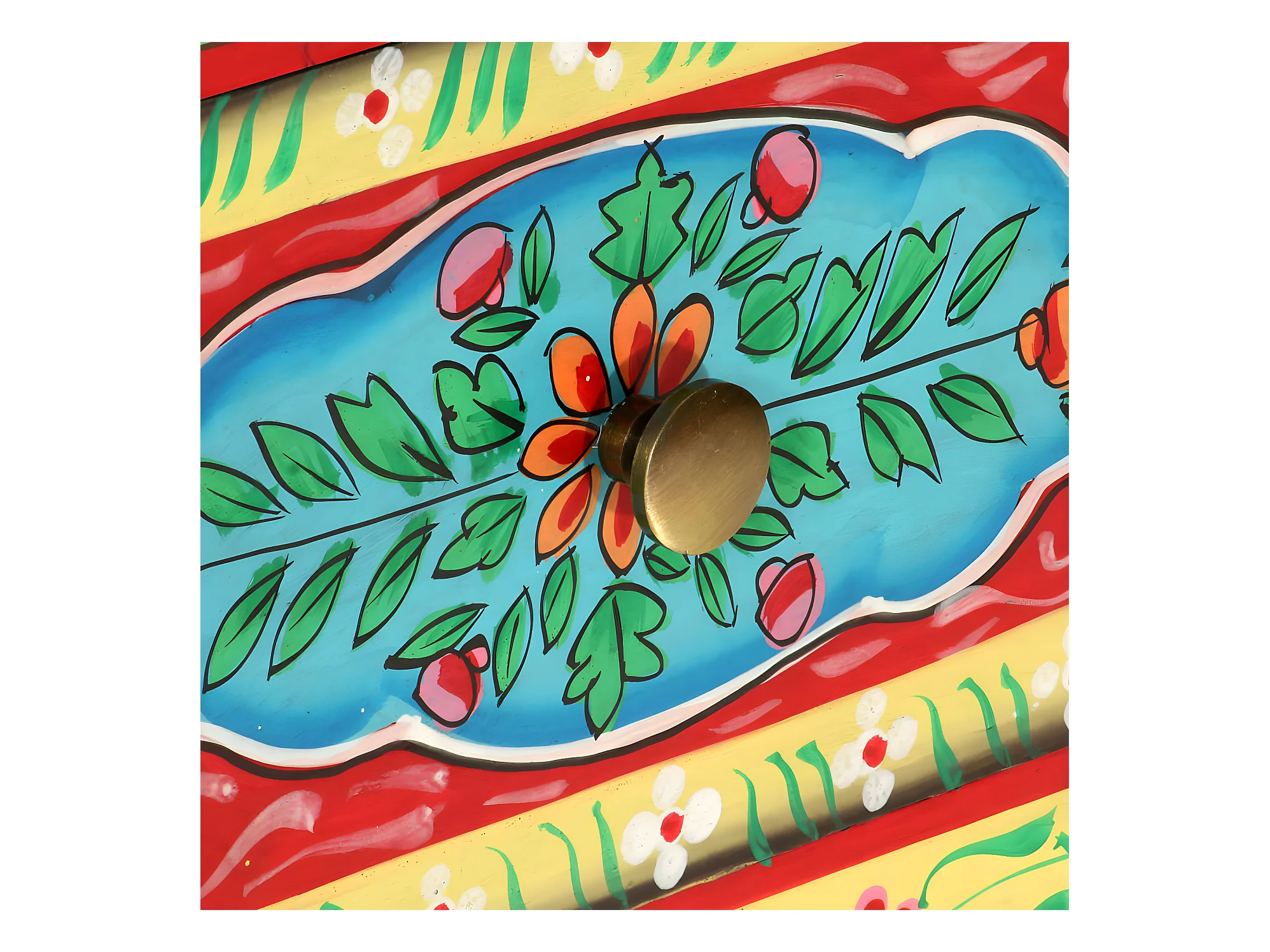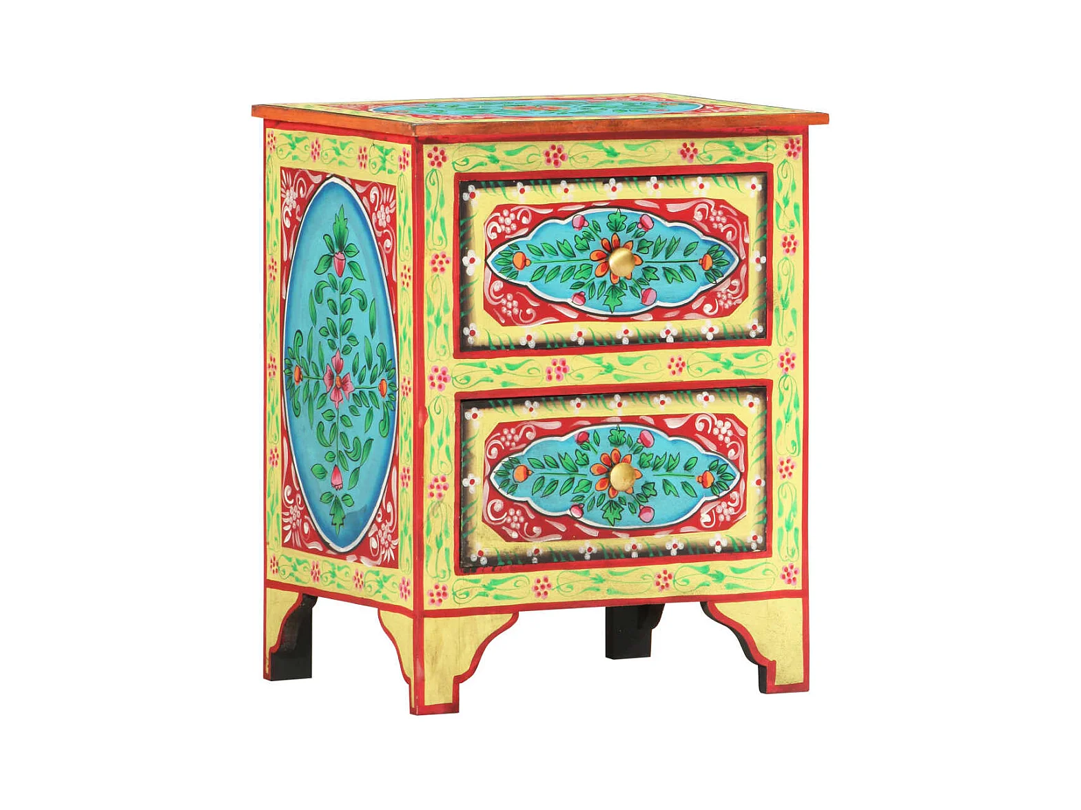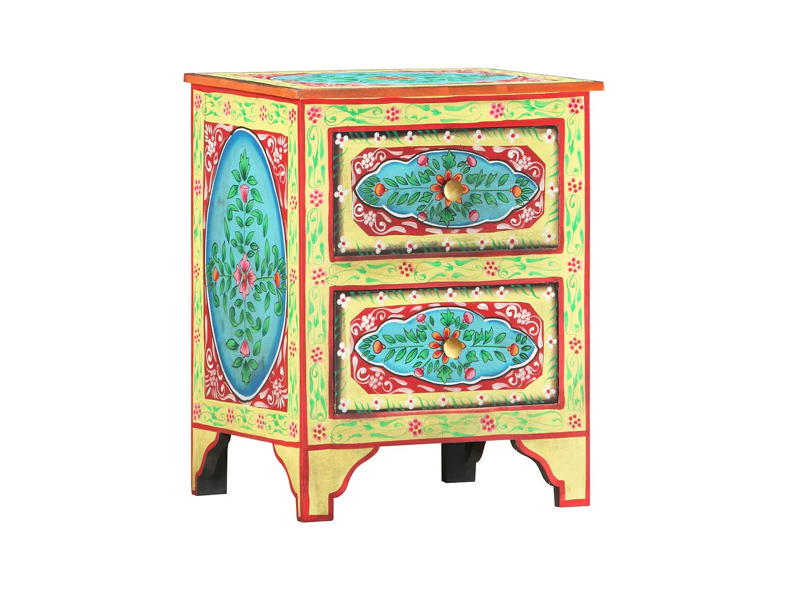 Table de chevet peinte à la main 40x30x50 cm Bois de manguier