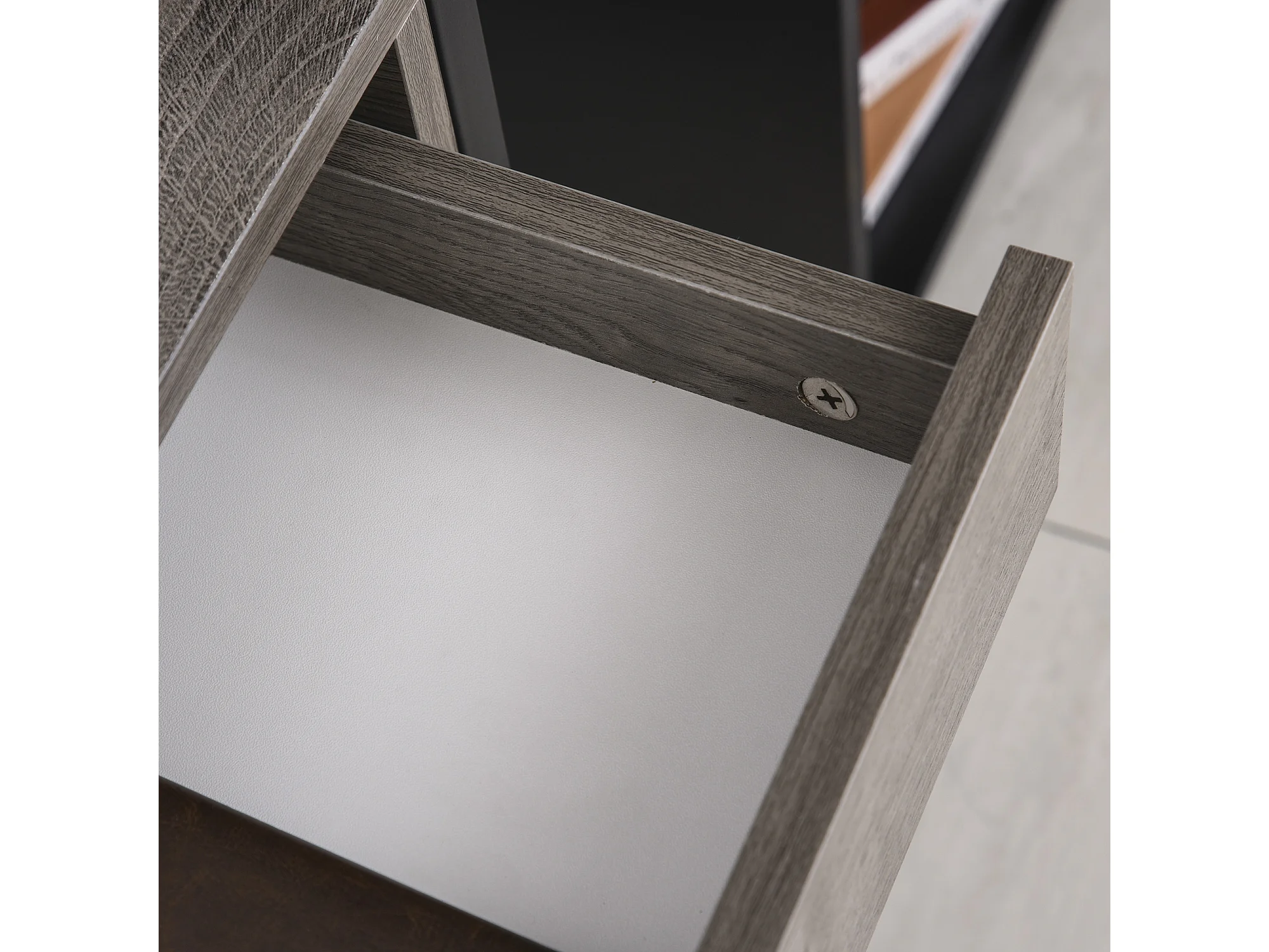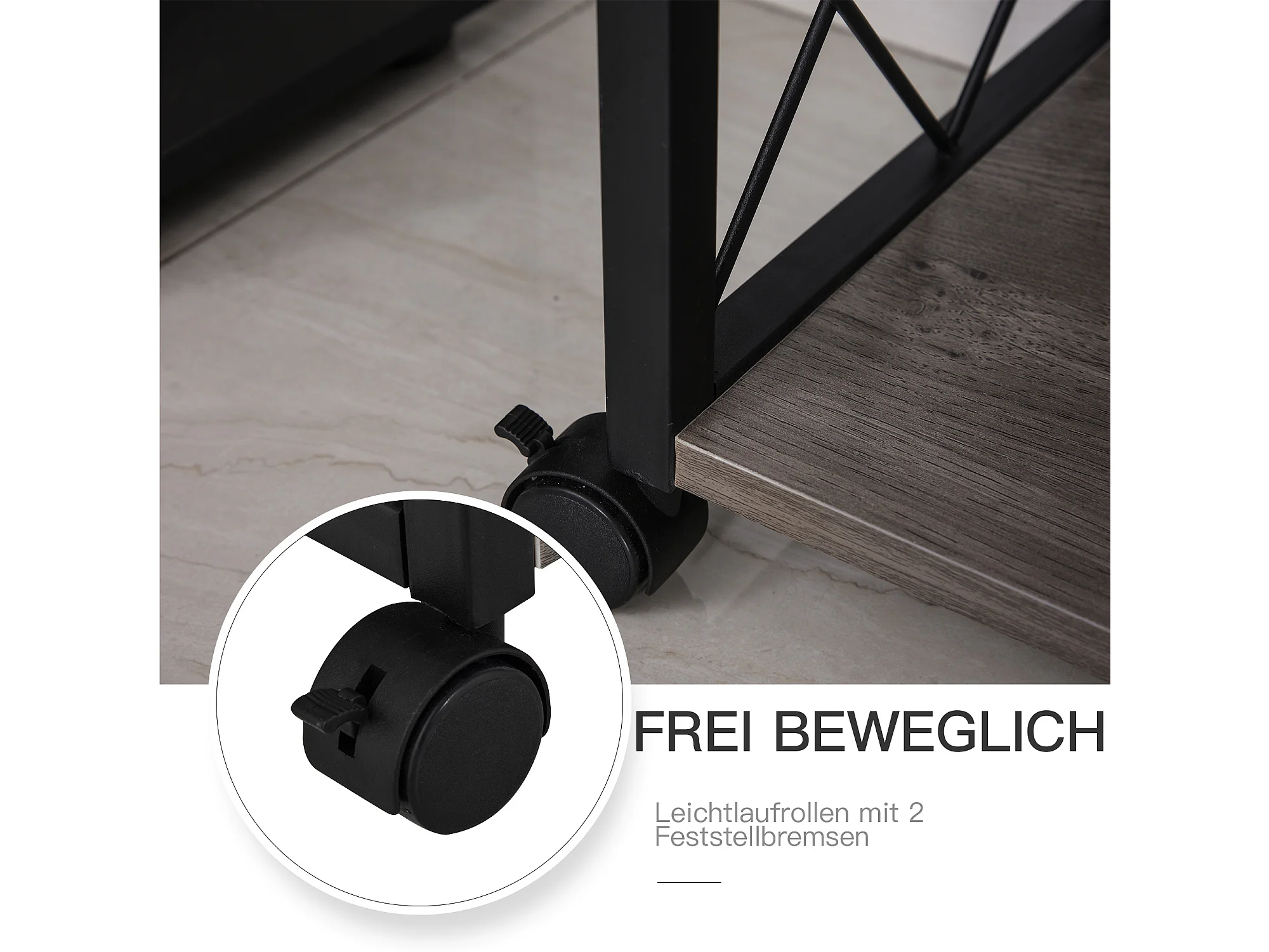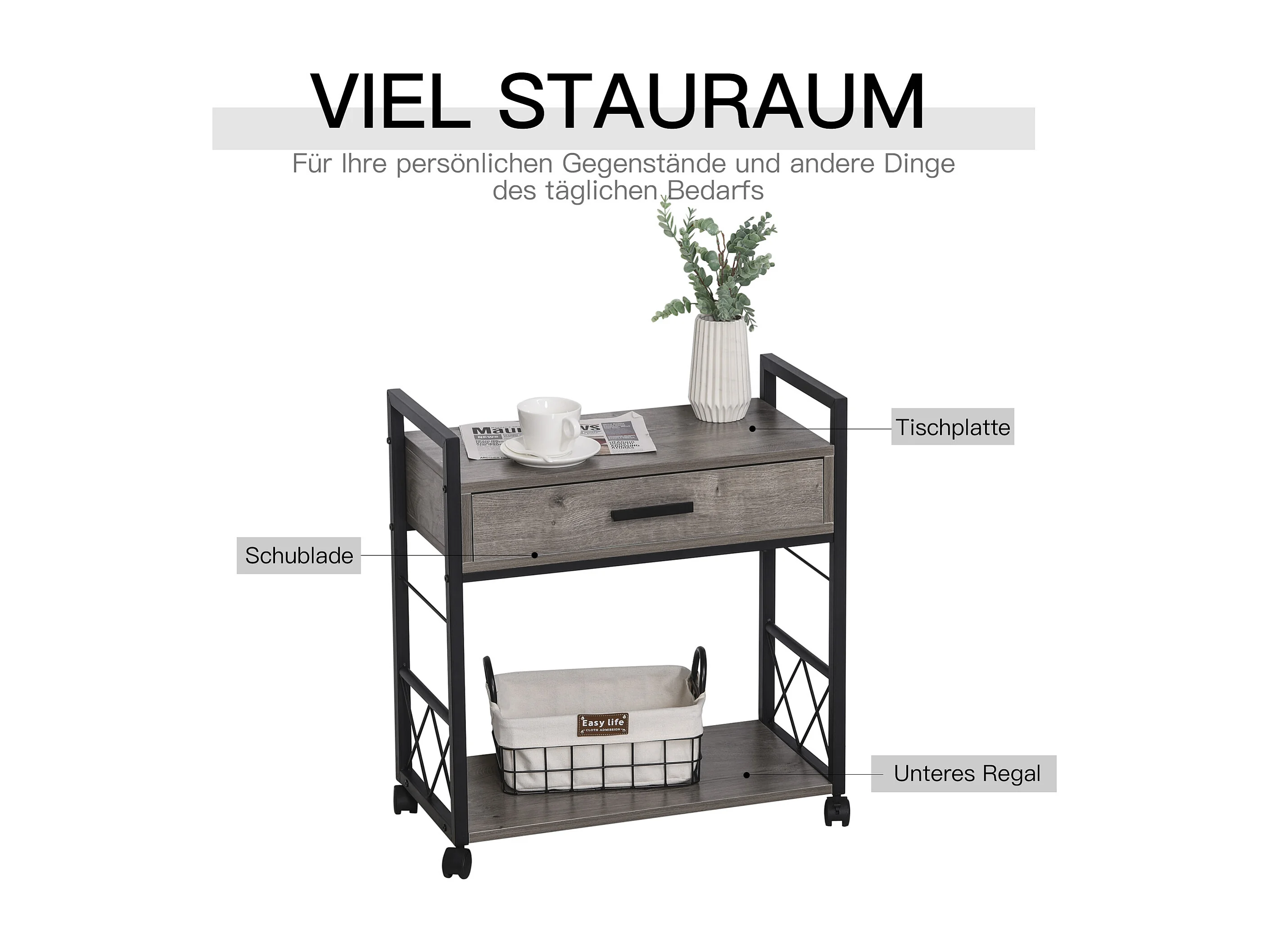 Table de chevet roulante avec tiroir, design élégant, bois et métal, gris (60x30x65cm)