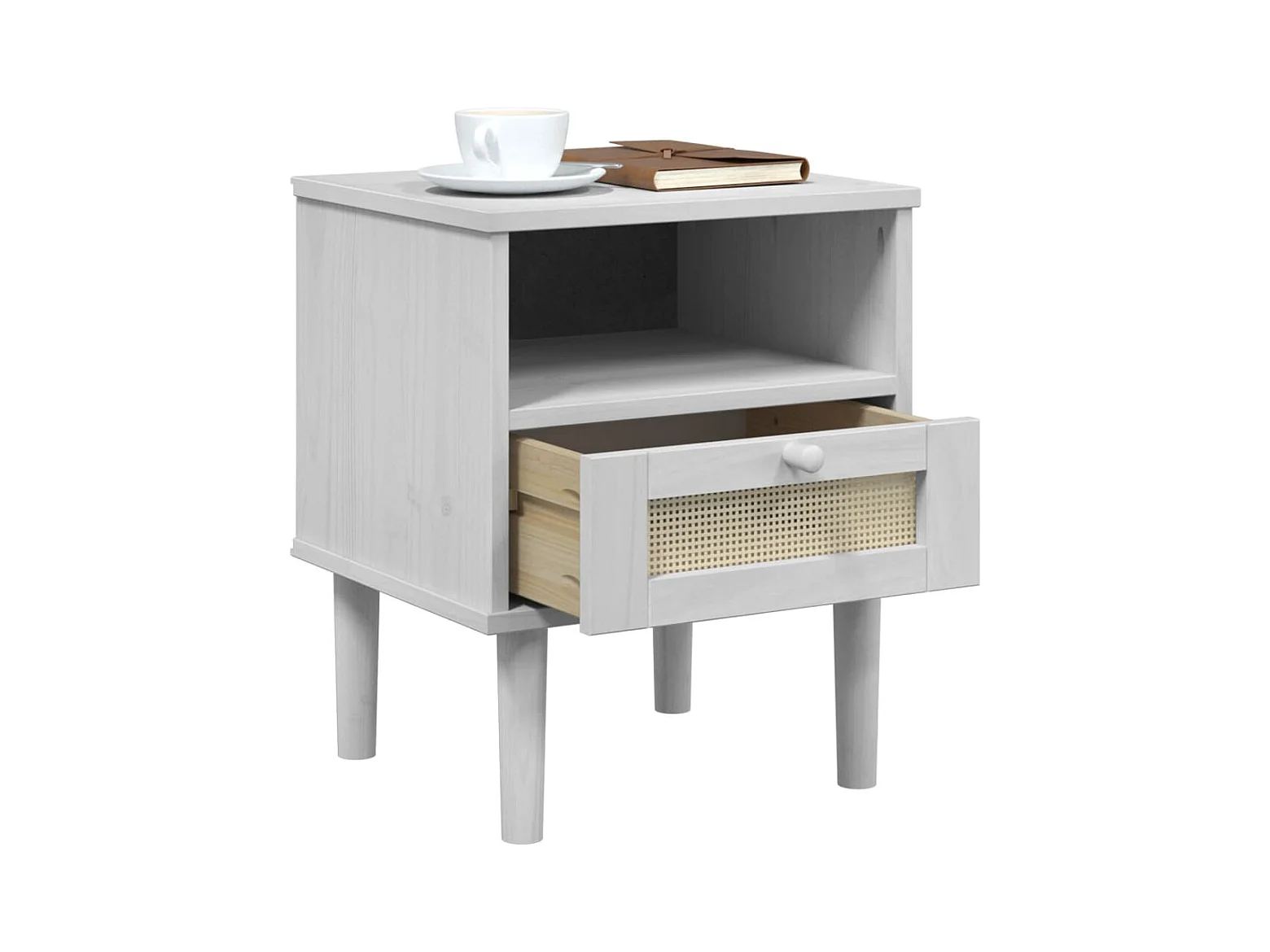 Table de chevet SENJA aspect de rotin blanc bois de pin massif