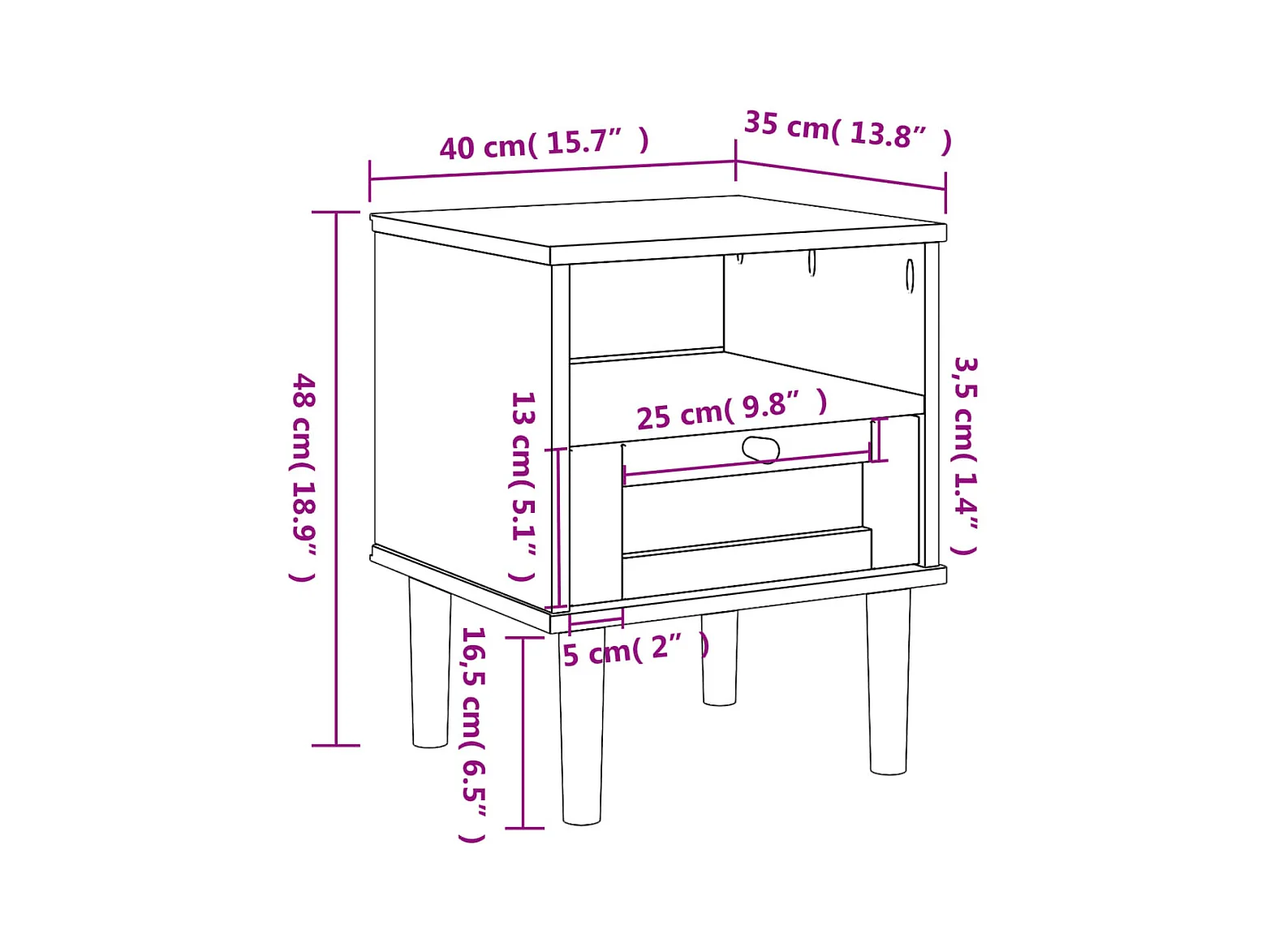 Table de chevet MOLDE Blanc 40x35x65 cm Bois de pin massif KEFWE31135