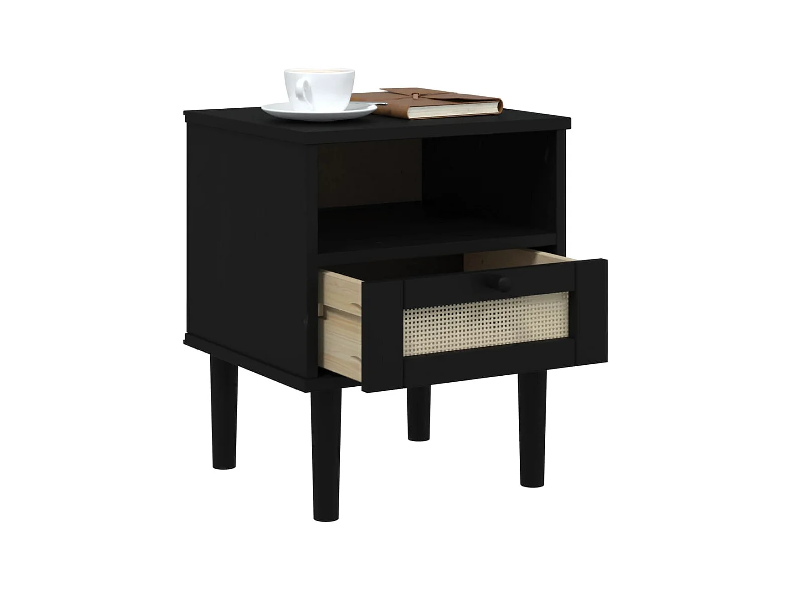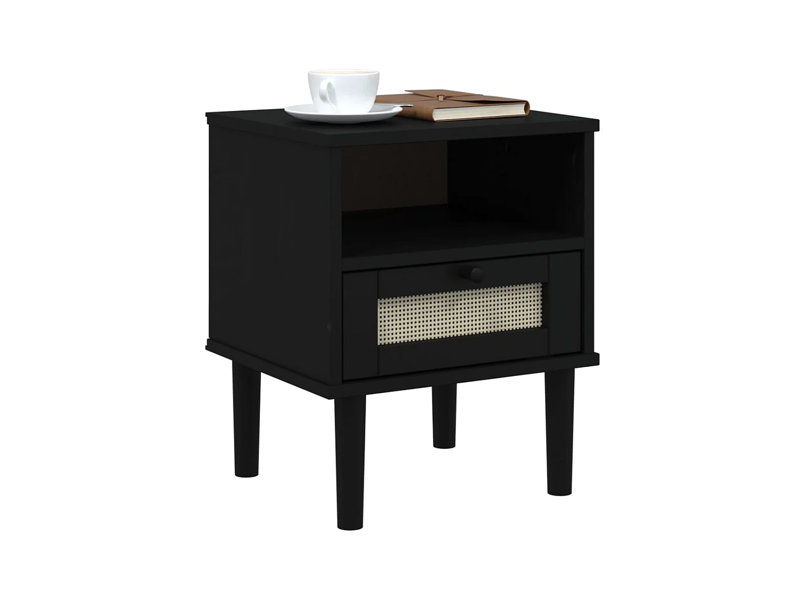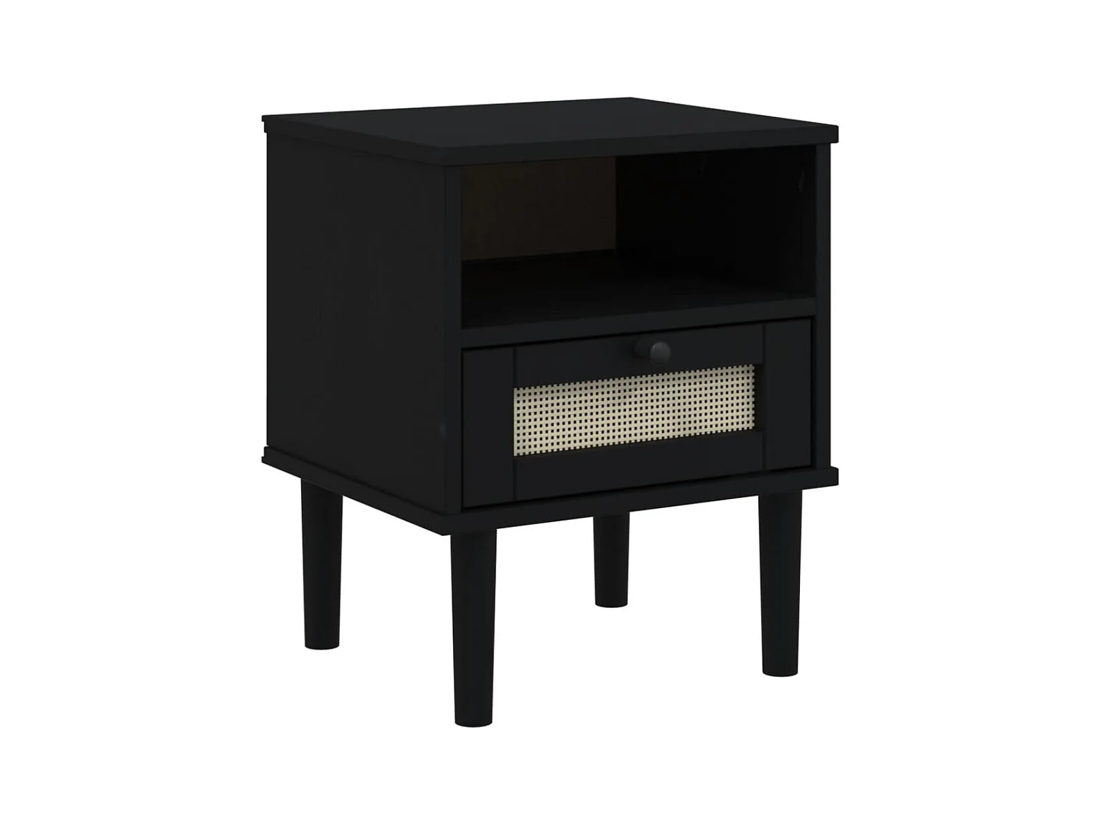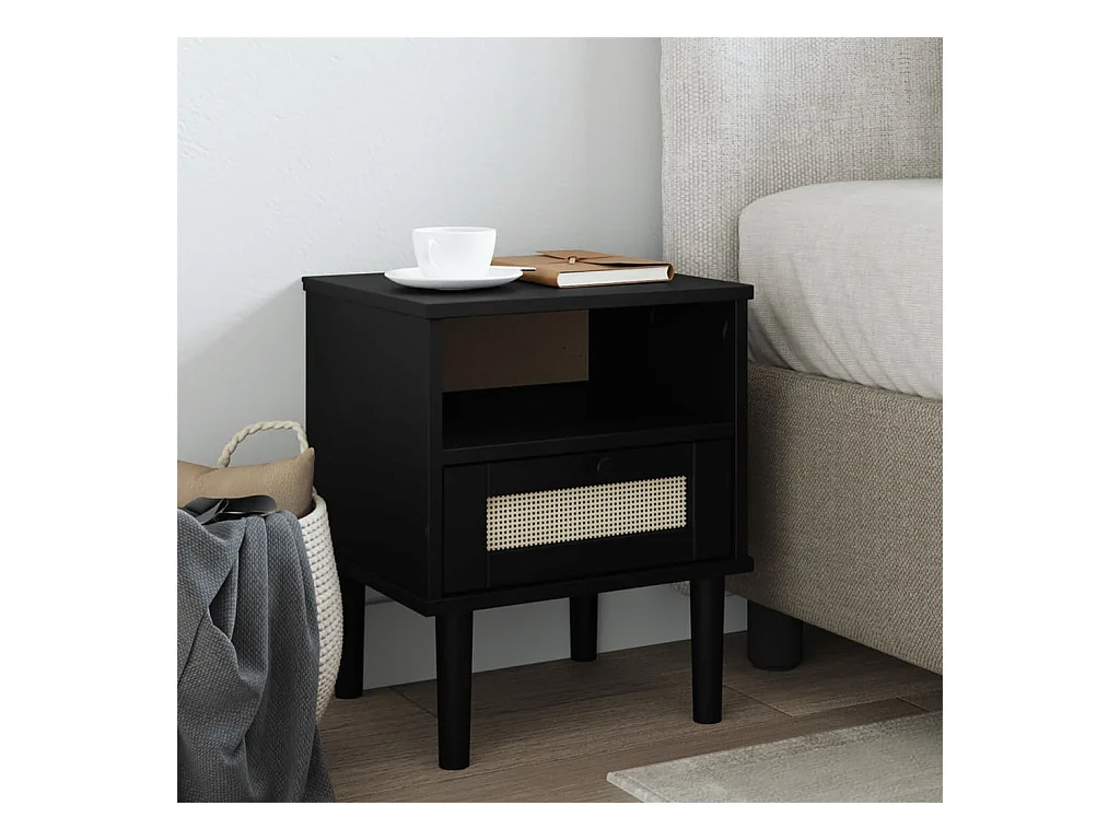 Table de chevet SENJA aspect de rotin noir bois de pin massif