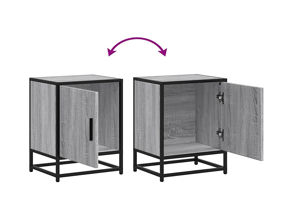 Tables de chevet 2 pièces sonoma gris bois d'ingénierie et métal