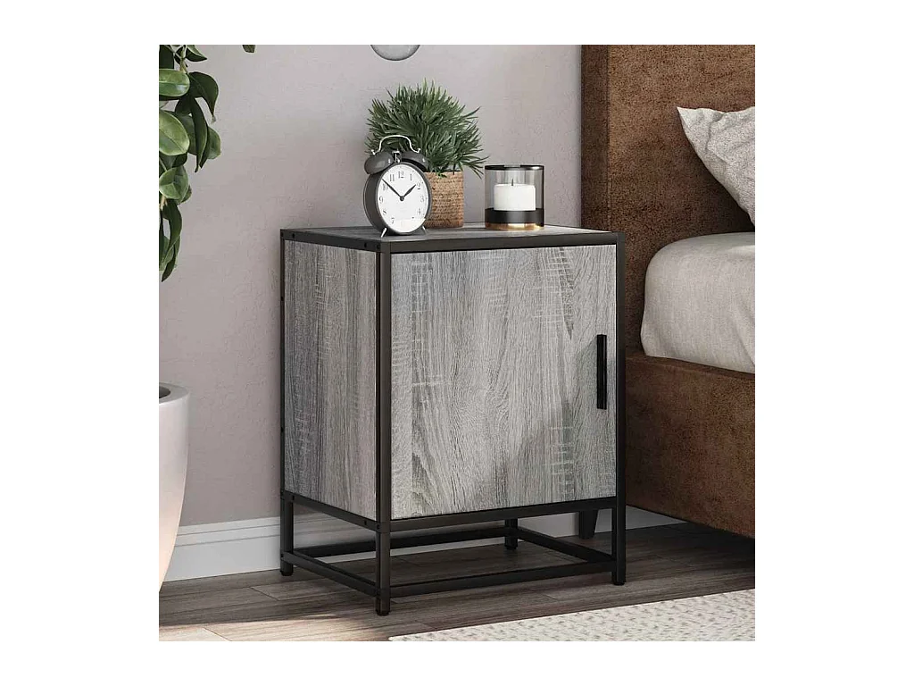 Table de chevet sonoma gris 40x34,5x60 cm bois ingénierie métal