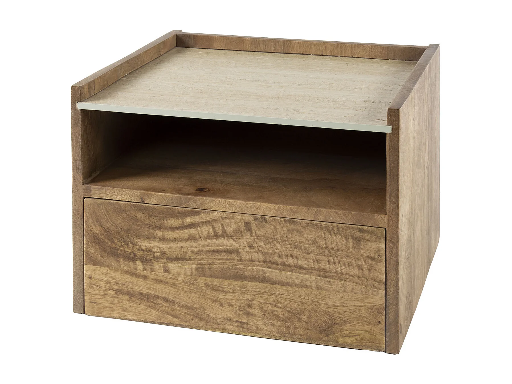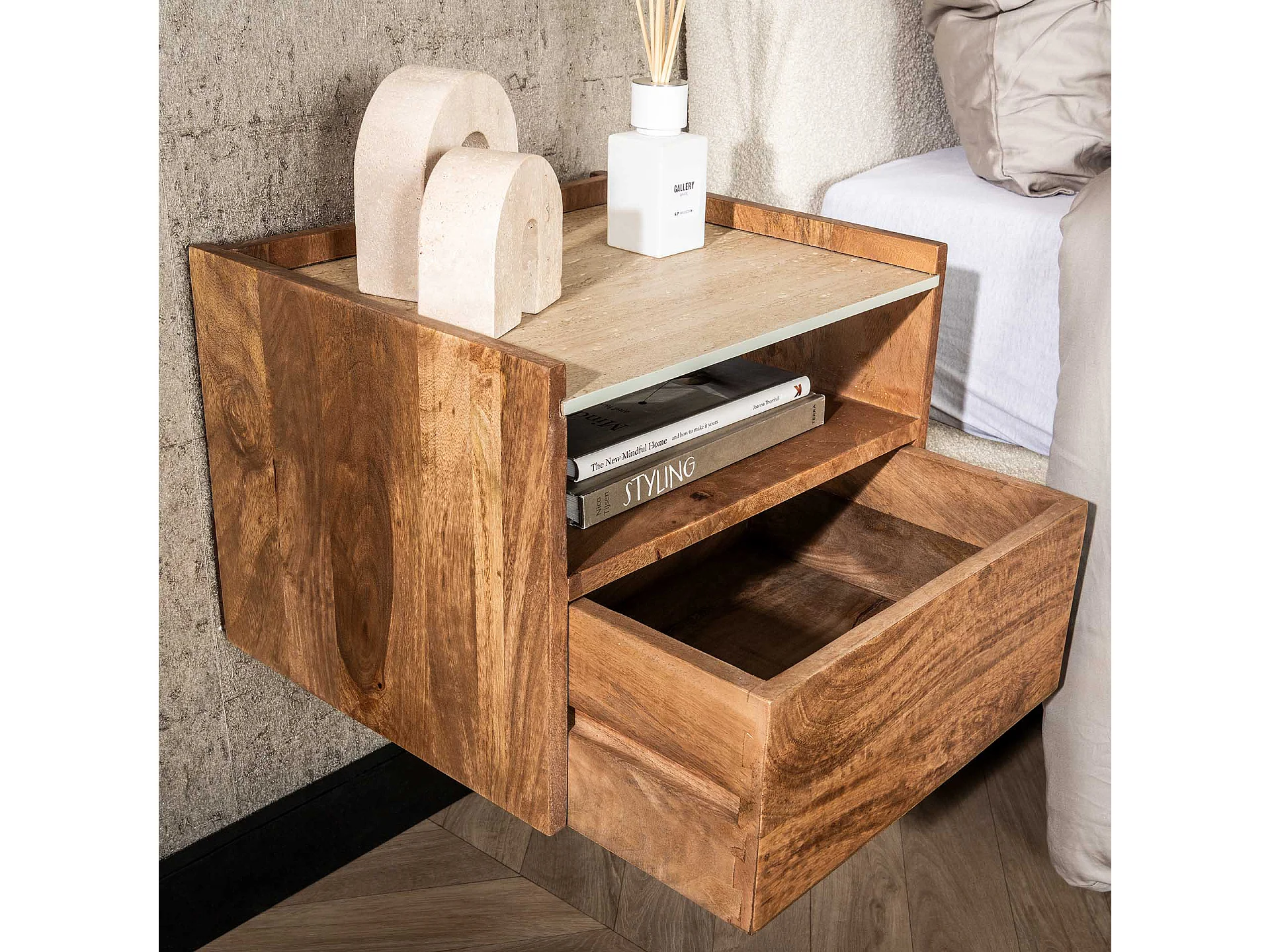 Table de chevet suspendue ouverte Nuovo Travertin - Mangue massif couleur sable