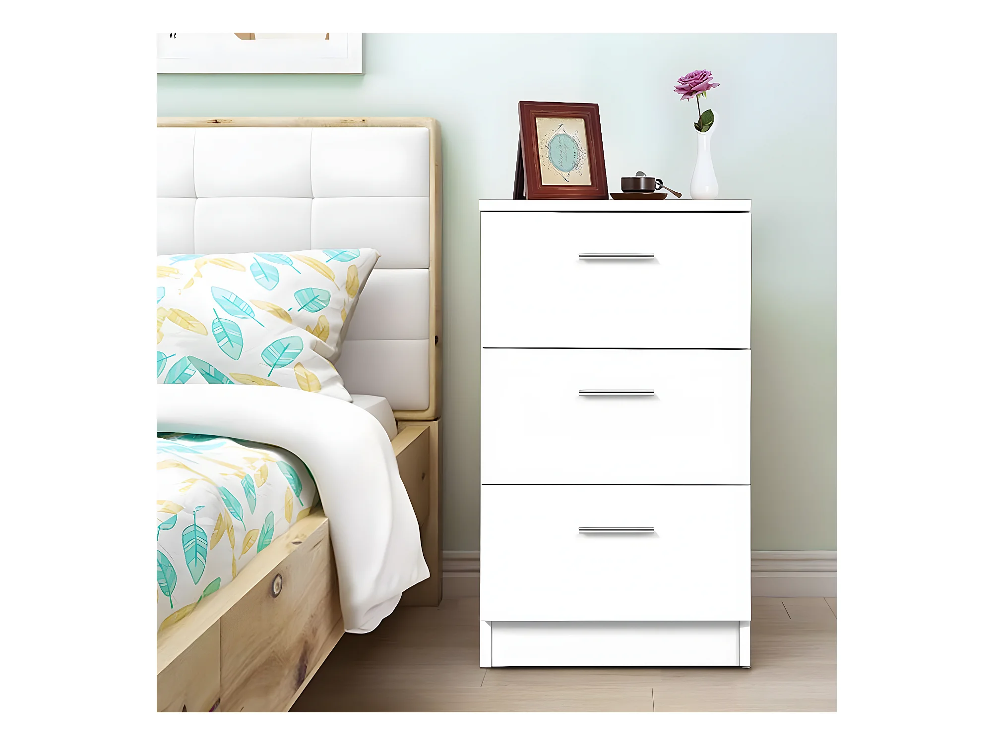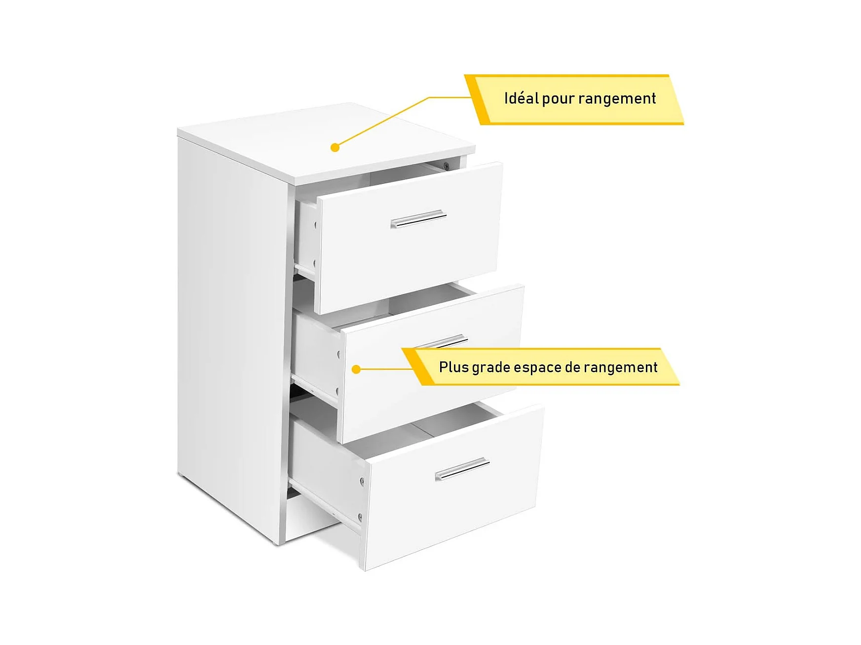 Commode Chambre en Bois avec 3 Tiroirs, Caisson de Bureau avec Tiroir, Table de Chevet pour Lit de H60CM, 35x38x67CM(Blanc)