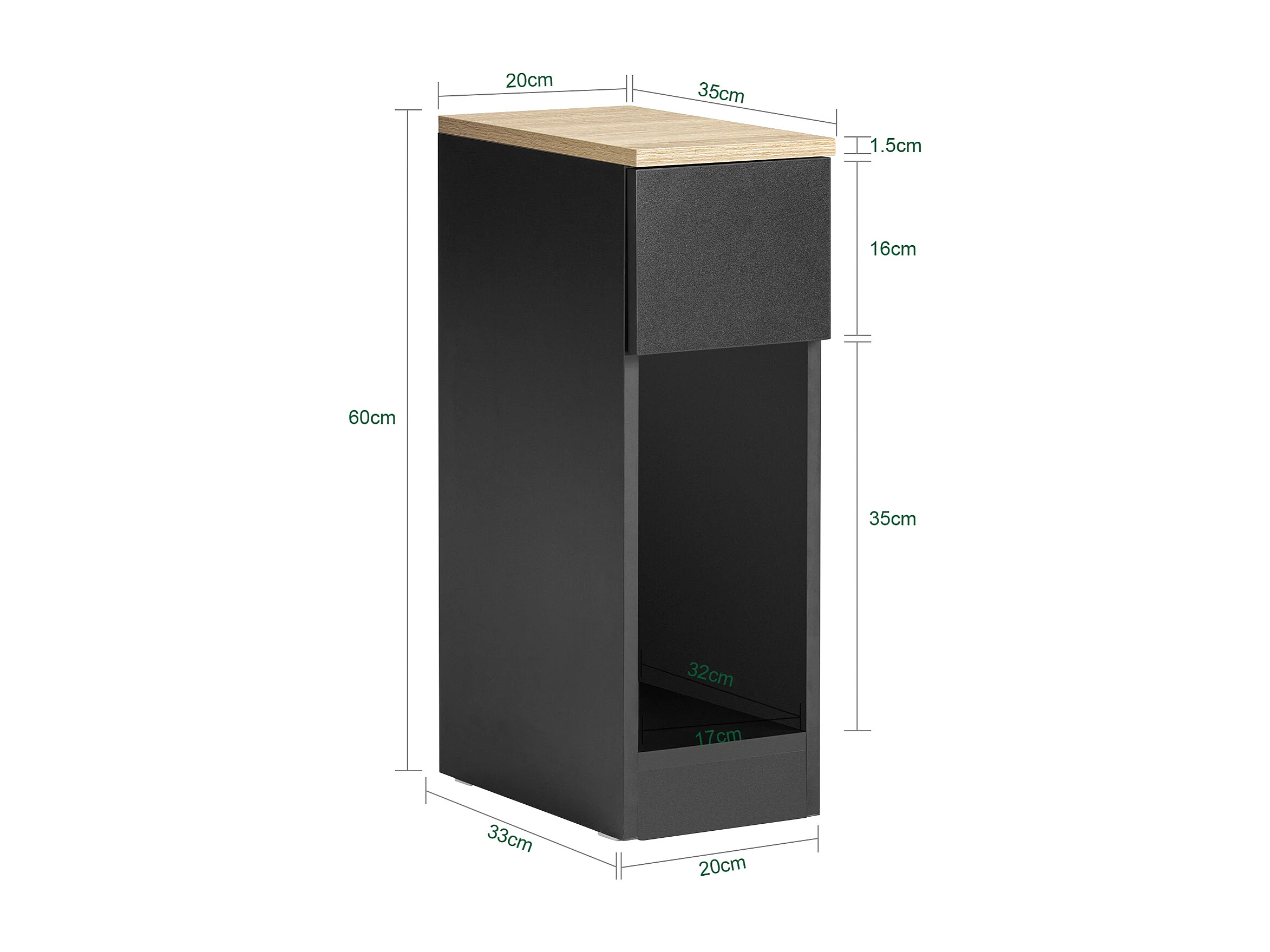 Commode Chambre en Bois avec 3 Tiroirs, Caisson de Bureau avec Tiroir, Table de Chevet pour Lit de H60CM, 35x38x67CM(Noir)