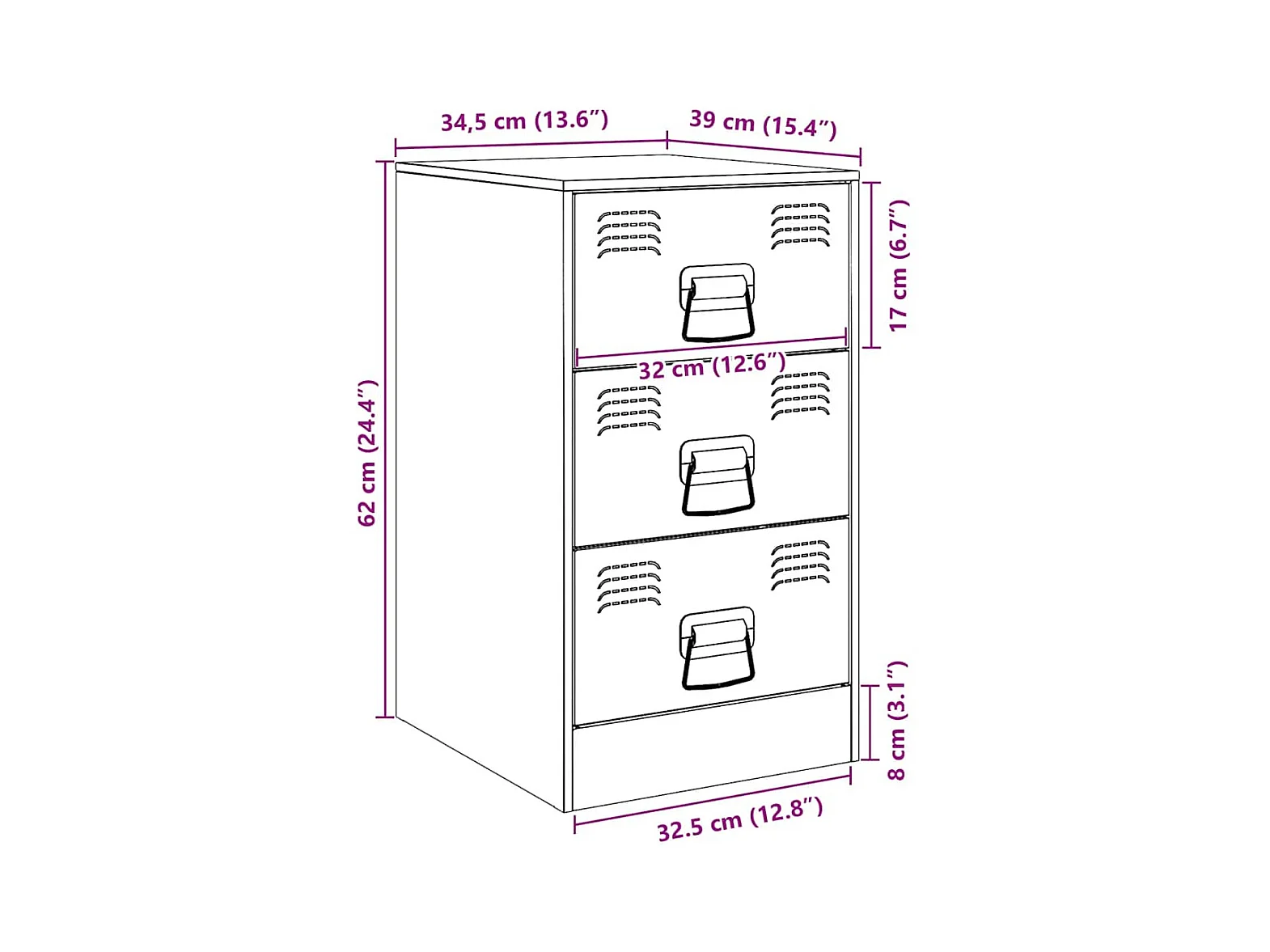 Table de chevet vert olive 34,5x39x62 cm acier
