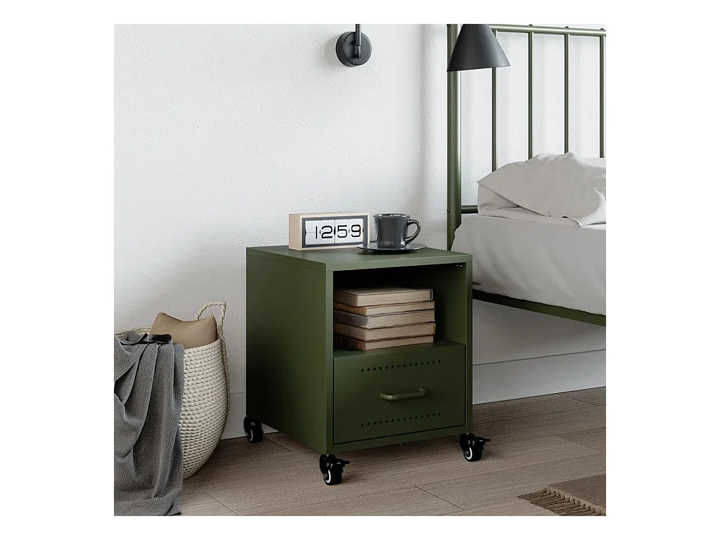 Table de chevet vert olive 36x39x60,5 cm acier laminé à froid