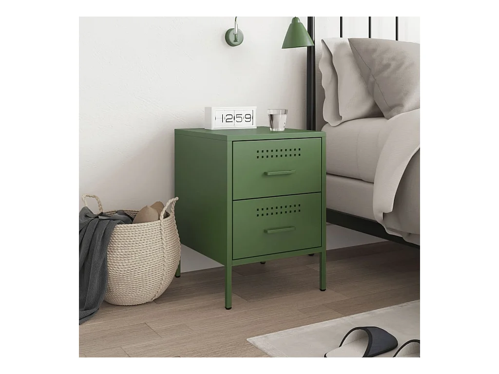 Table de chevet vert olive 36x39x68 cm acier laminé à froid FR95341