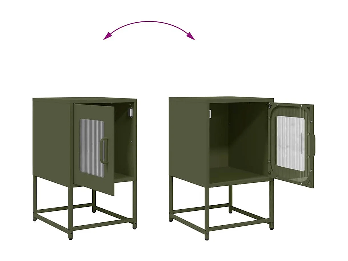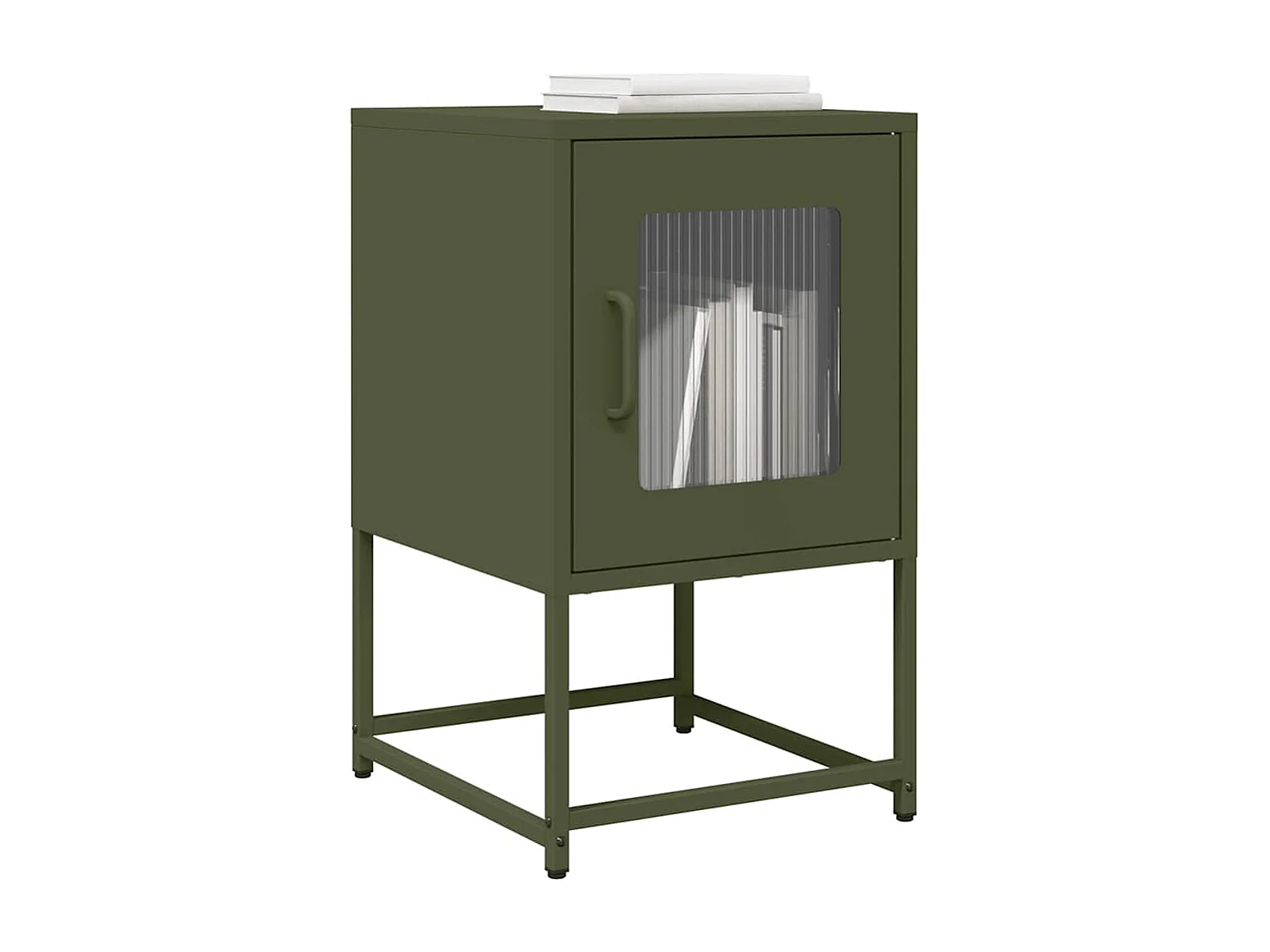 Table de chevet vert olive 36x39x60,5 cm acier laminé à froid