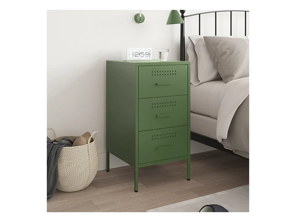 Table de chevet vert olive 36x39x68 cm acier laminé à froid FR79826