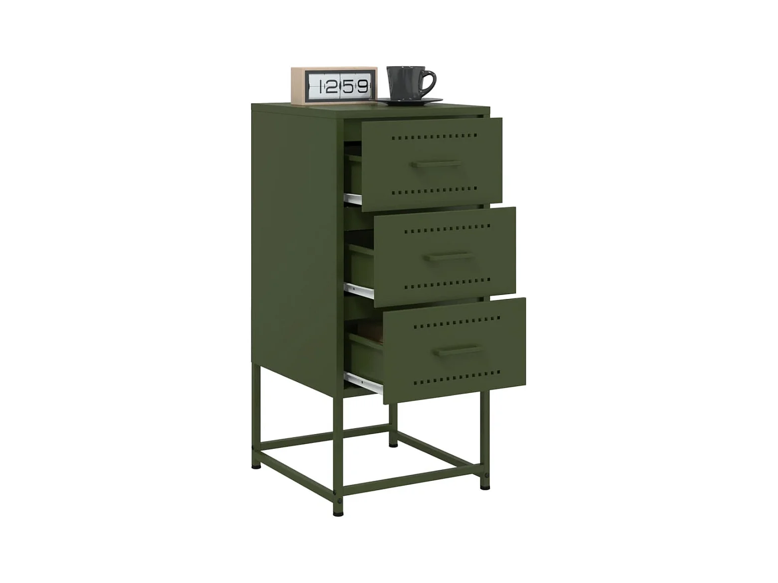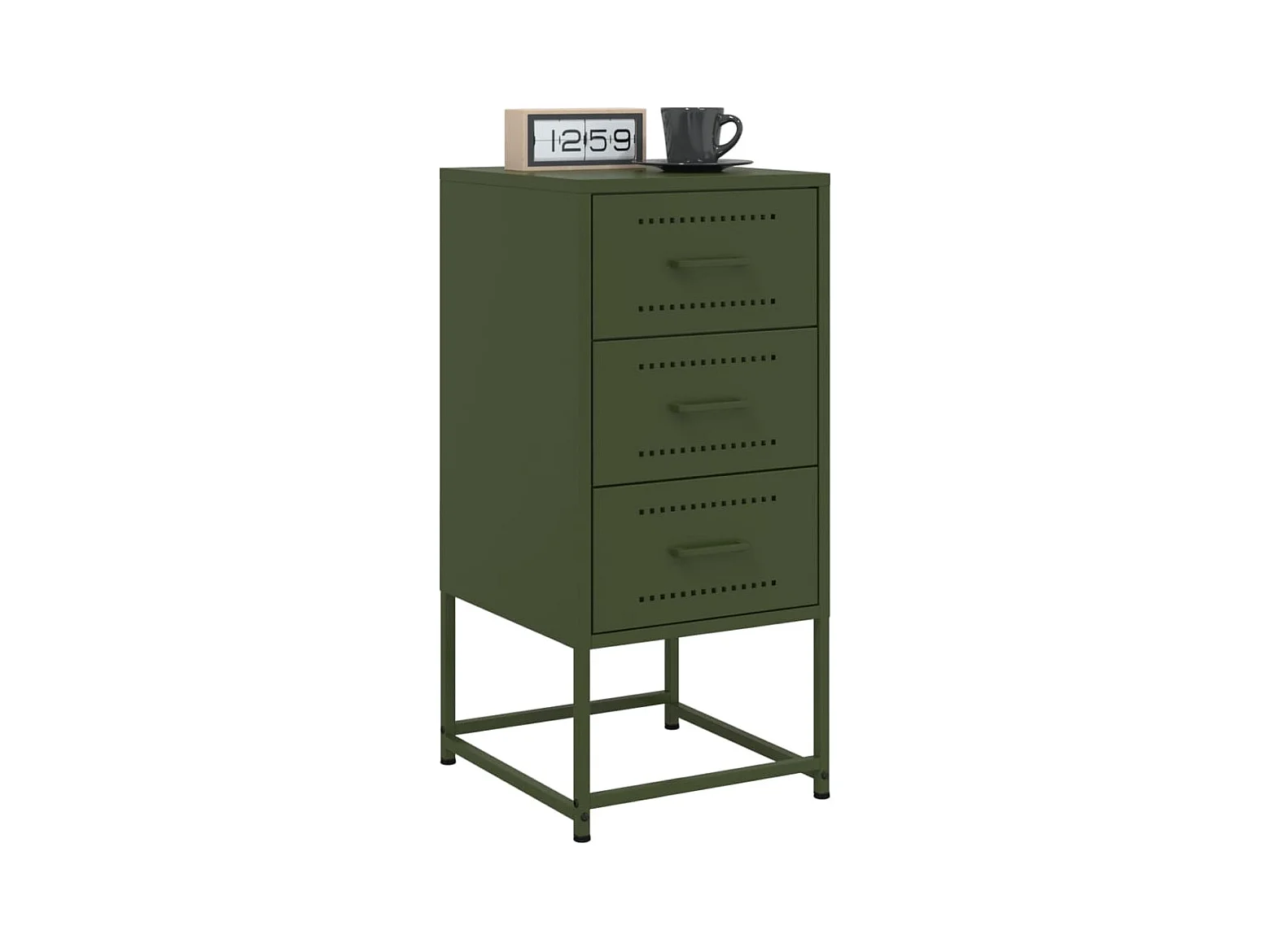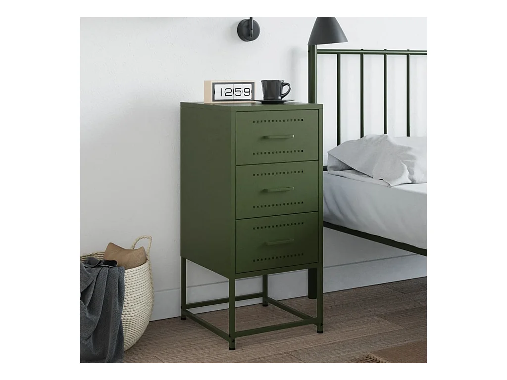Table de chevet vert olive 36x39x60,5 cm acier laminé à froid