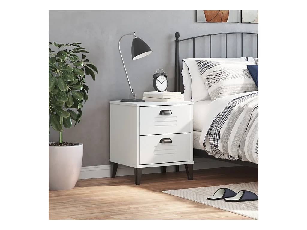 Table de chevet avec pieds en métal Blanc Bois pin massif OSLO KEFWE99882