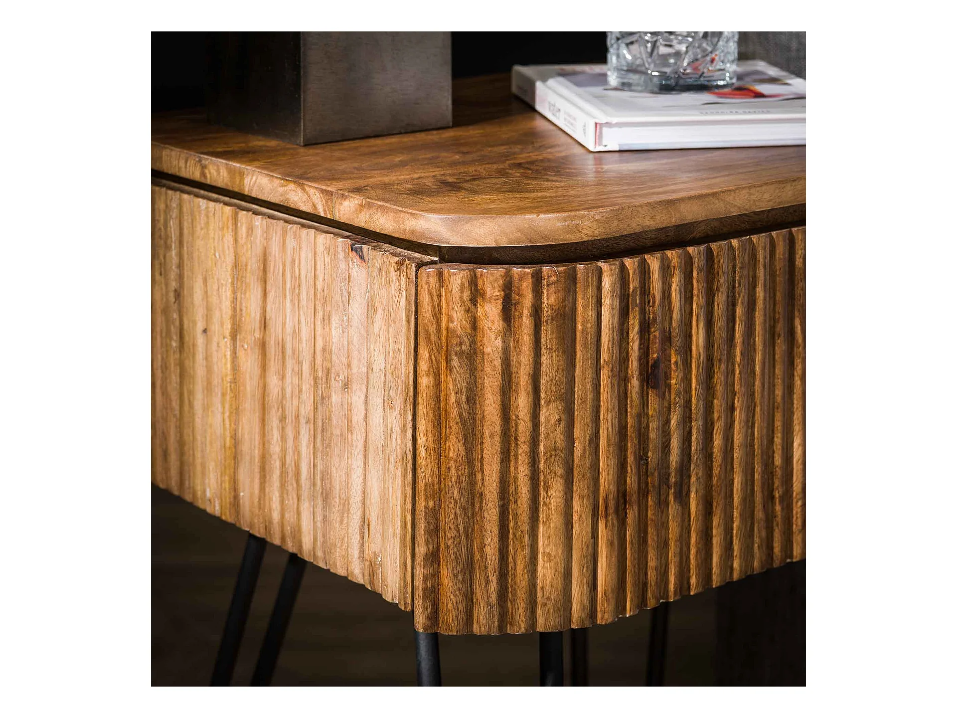 Table de chevet Wave - 1 tiroir - Mangue - Couleur sable