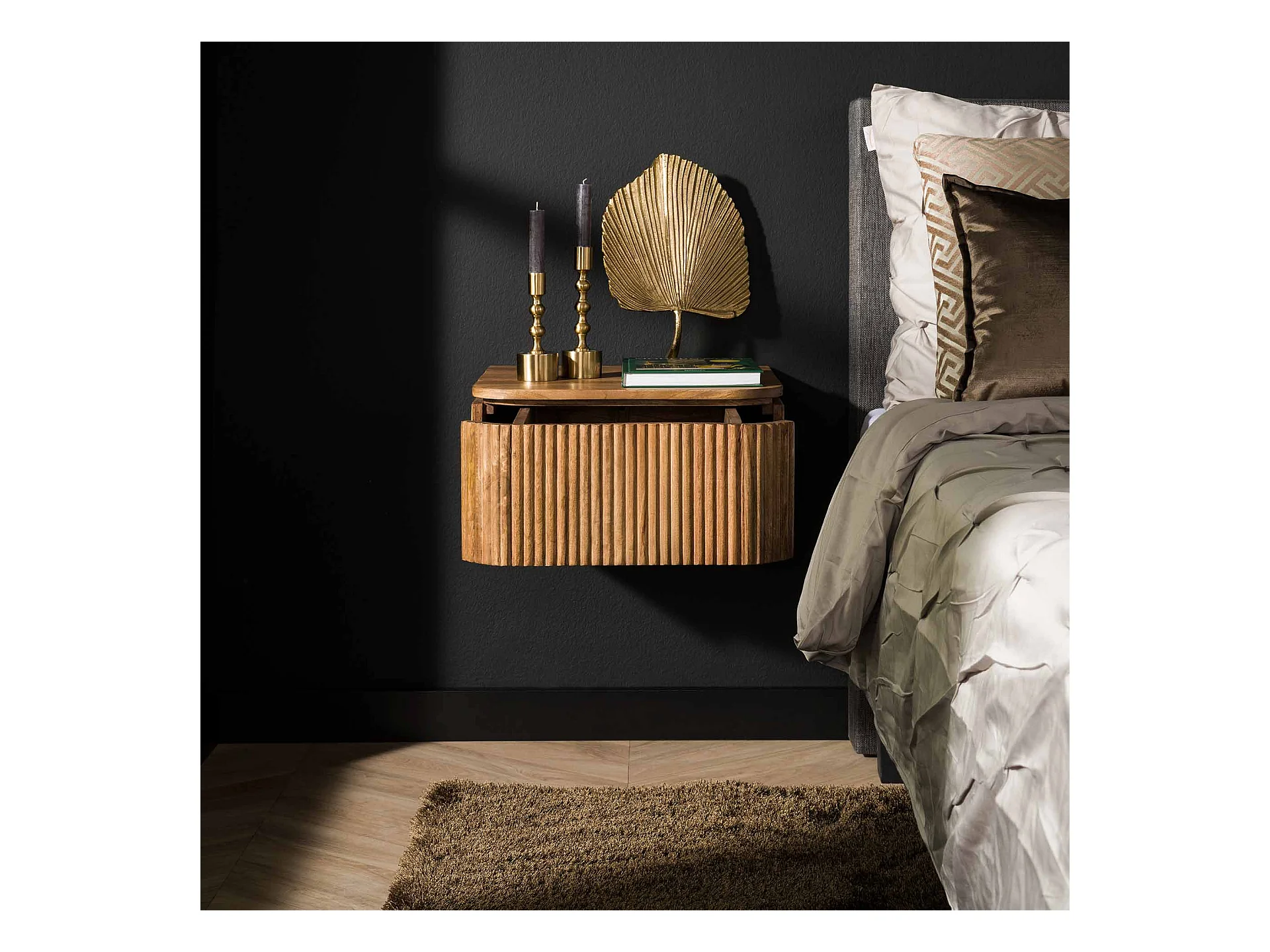 Table de chevet Wave - Suspendue 1 tiroir - Bois de manguier - Couleur sable