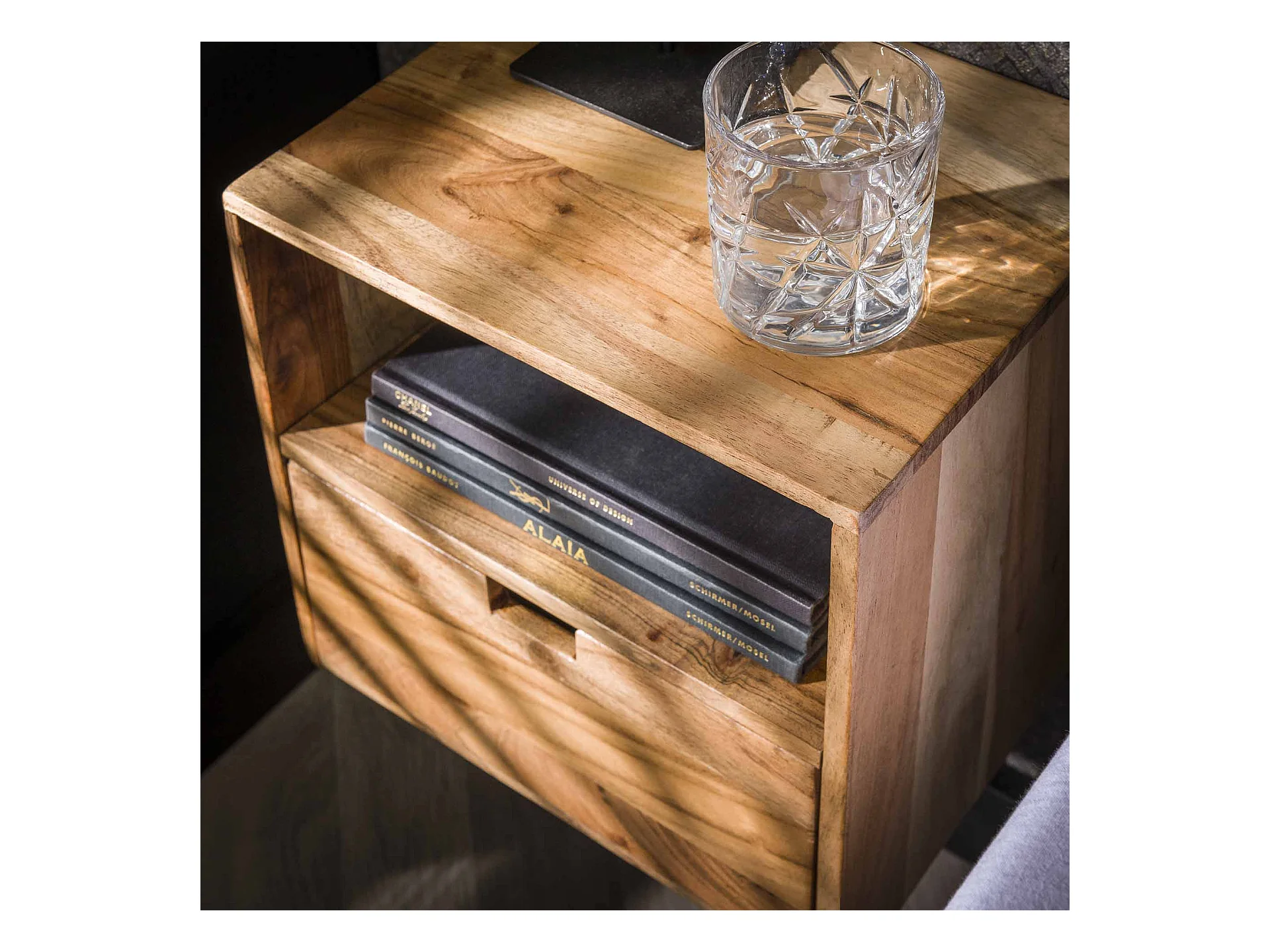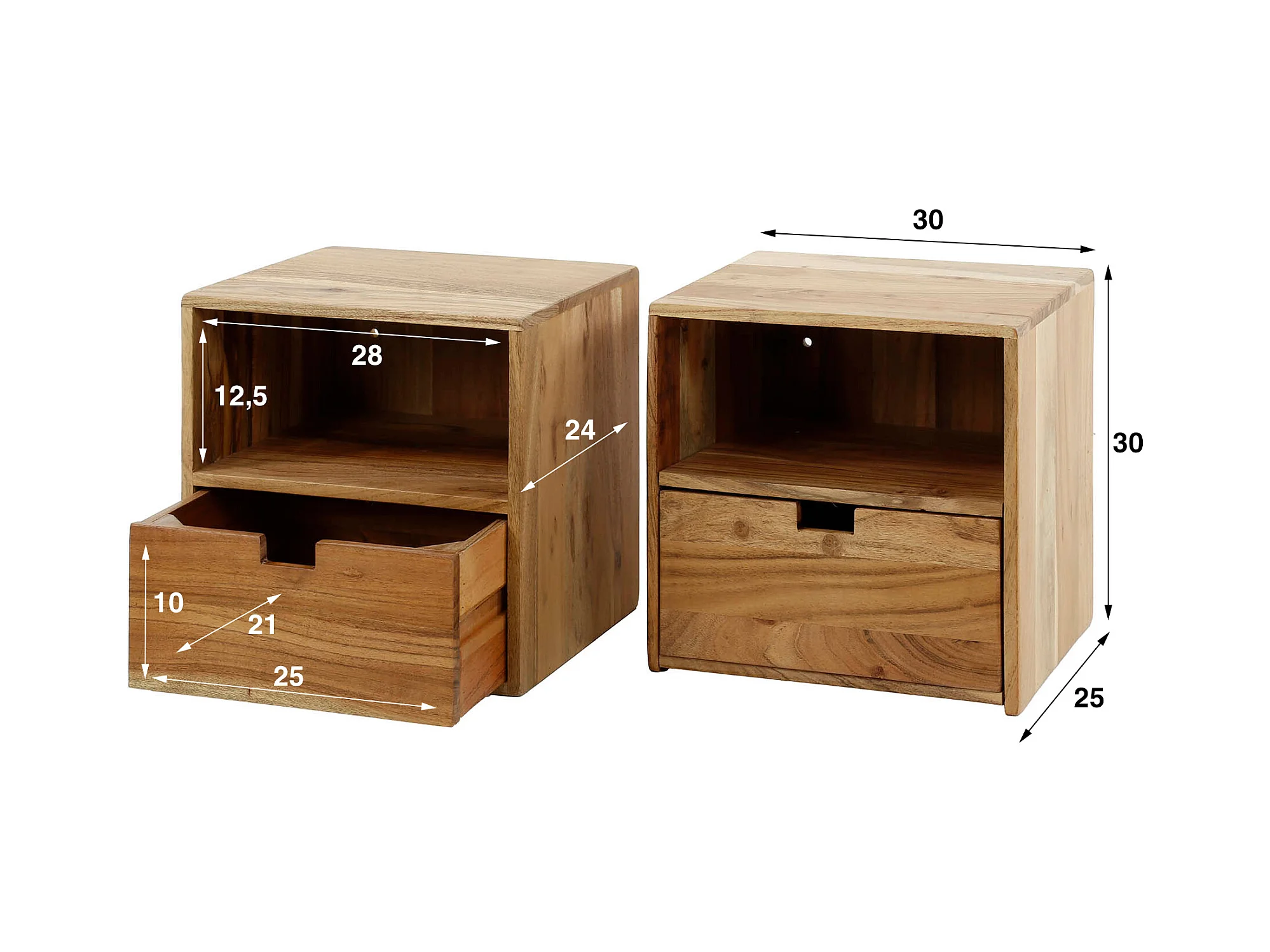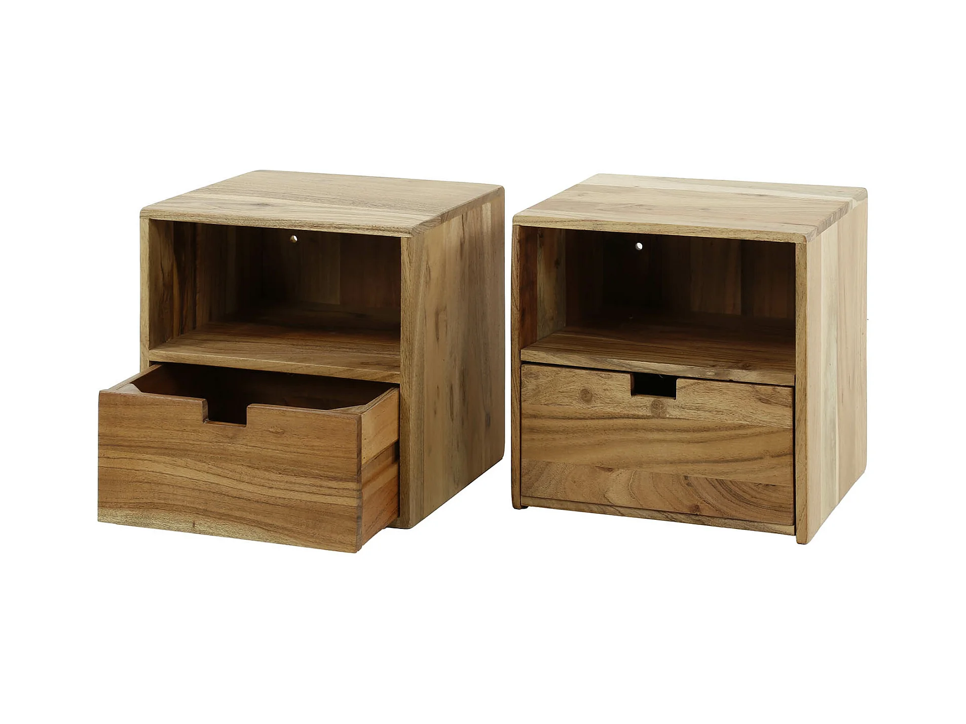 Table de chevet XS suspendue à plat - Acacia massif naturel - Lot de 2