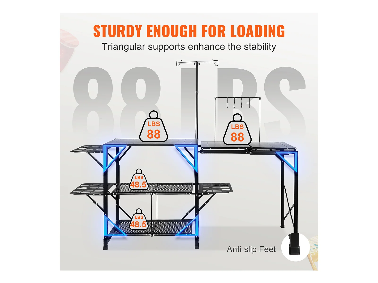 Table de Cuisine de Camping Pliante avec Station de Cuisson, Étagères et Évier
