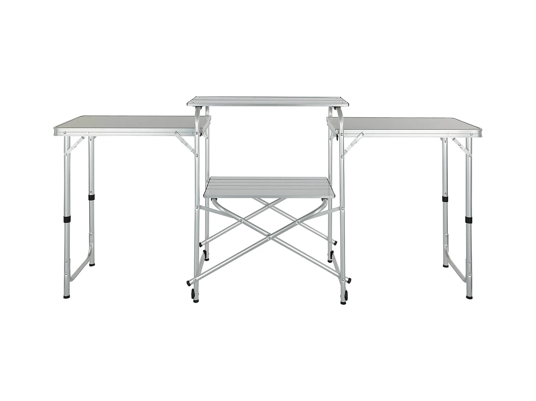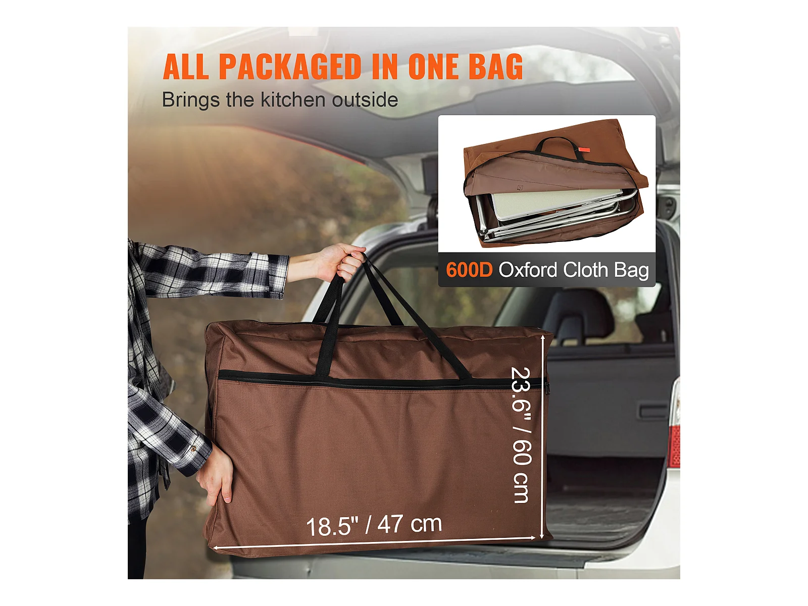 Table de Cuisine de Camping, Station de Cuisson Portable Pliable avec 3 Placards, Marron