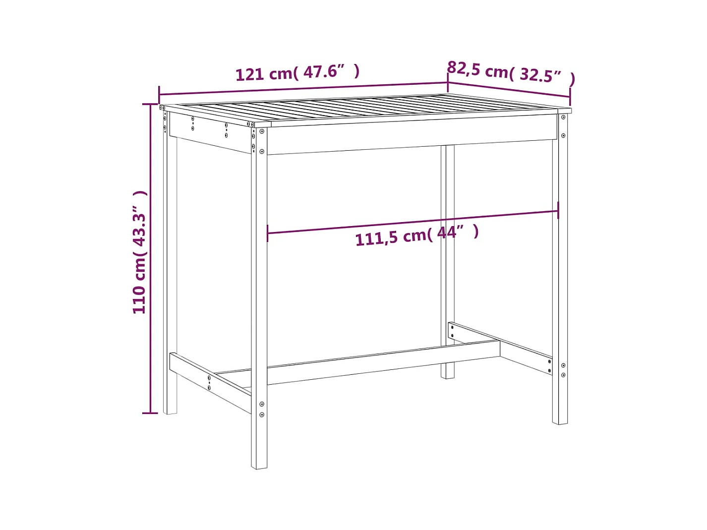 Table de jardin 121x82,5x110 cm bois massif de pin