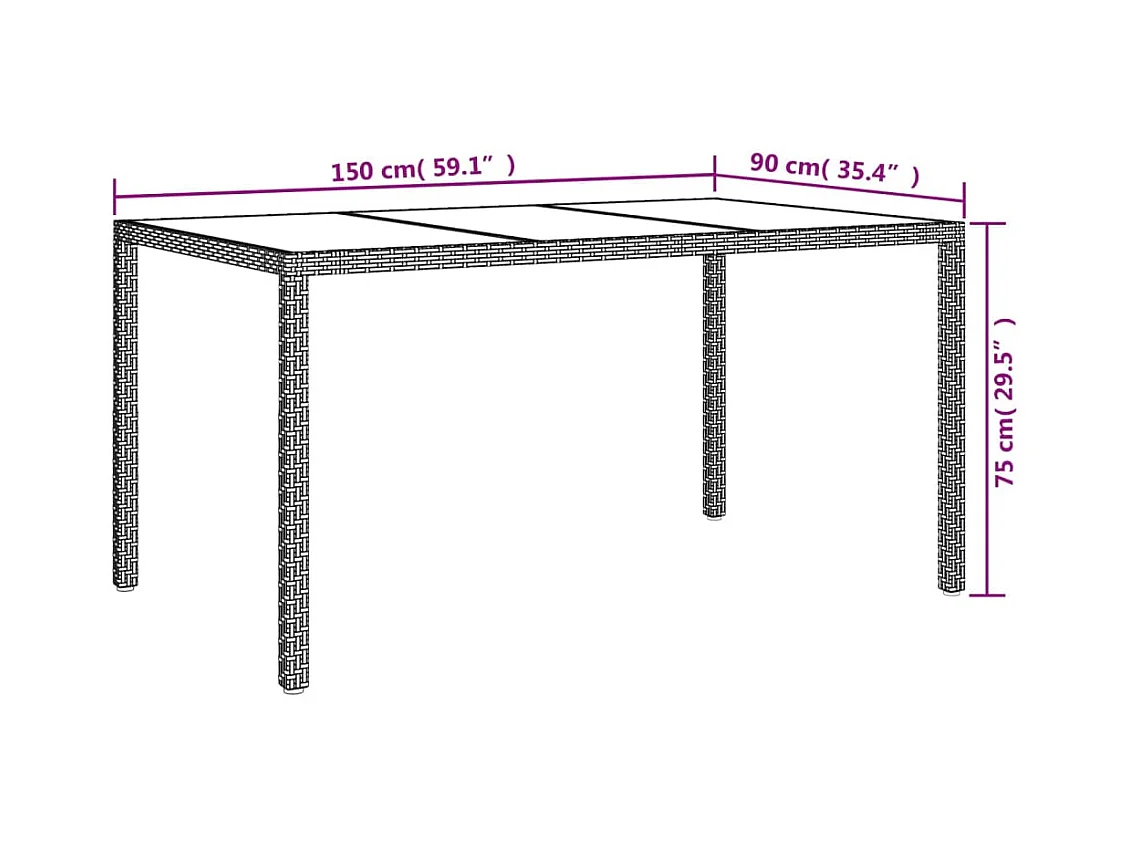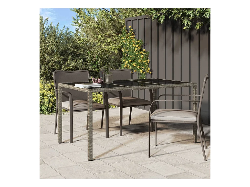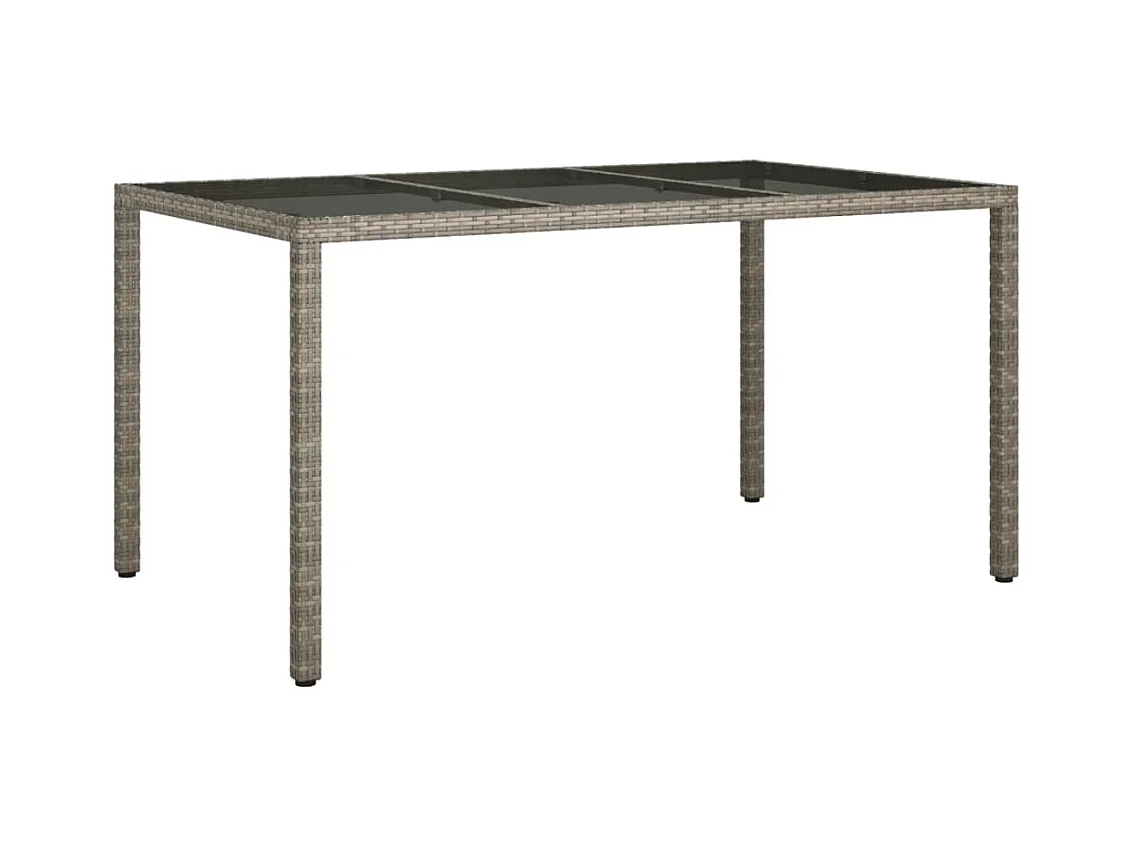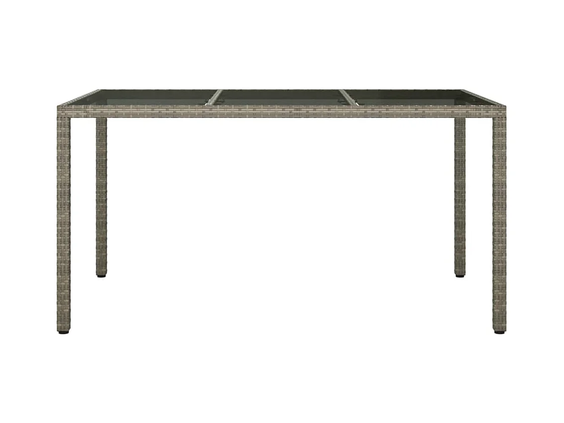 Table de jardin 150x90x75cm Verre trempé et résine tressée Gris