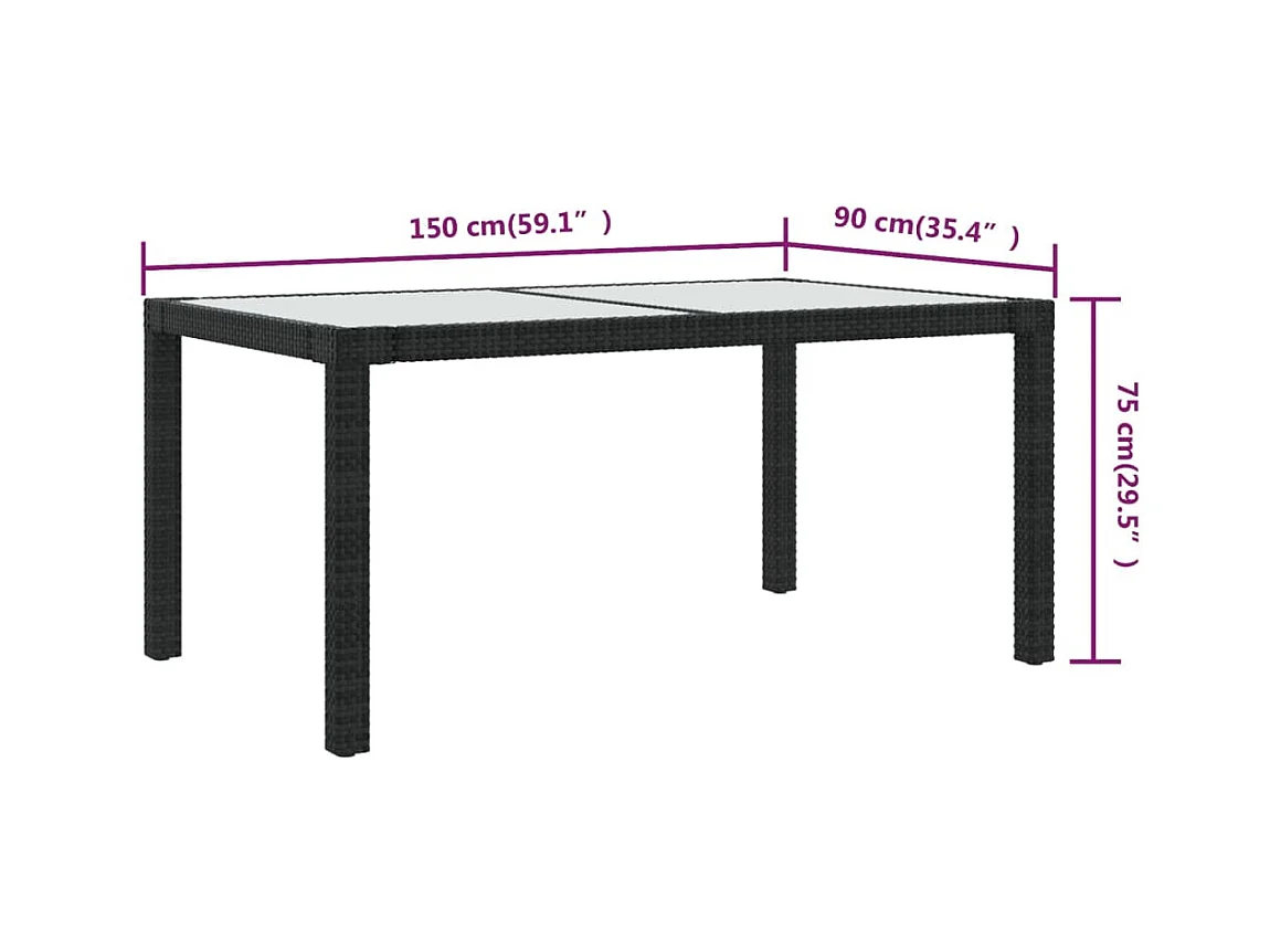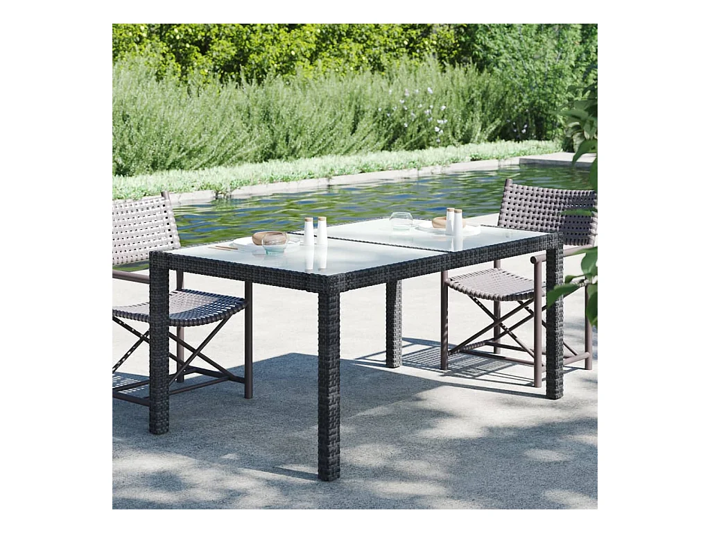 Table de jardin 150x90x75cm Verre trempé et résine tressée Noir GHR34363