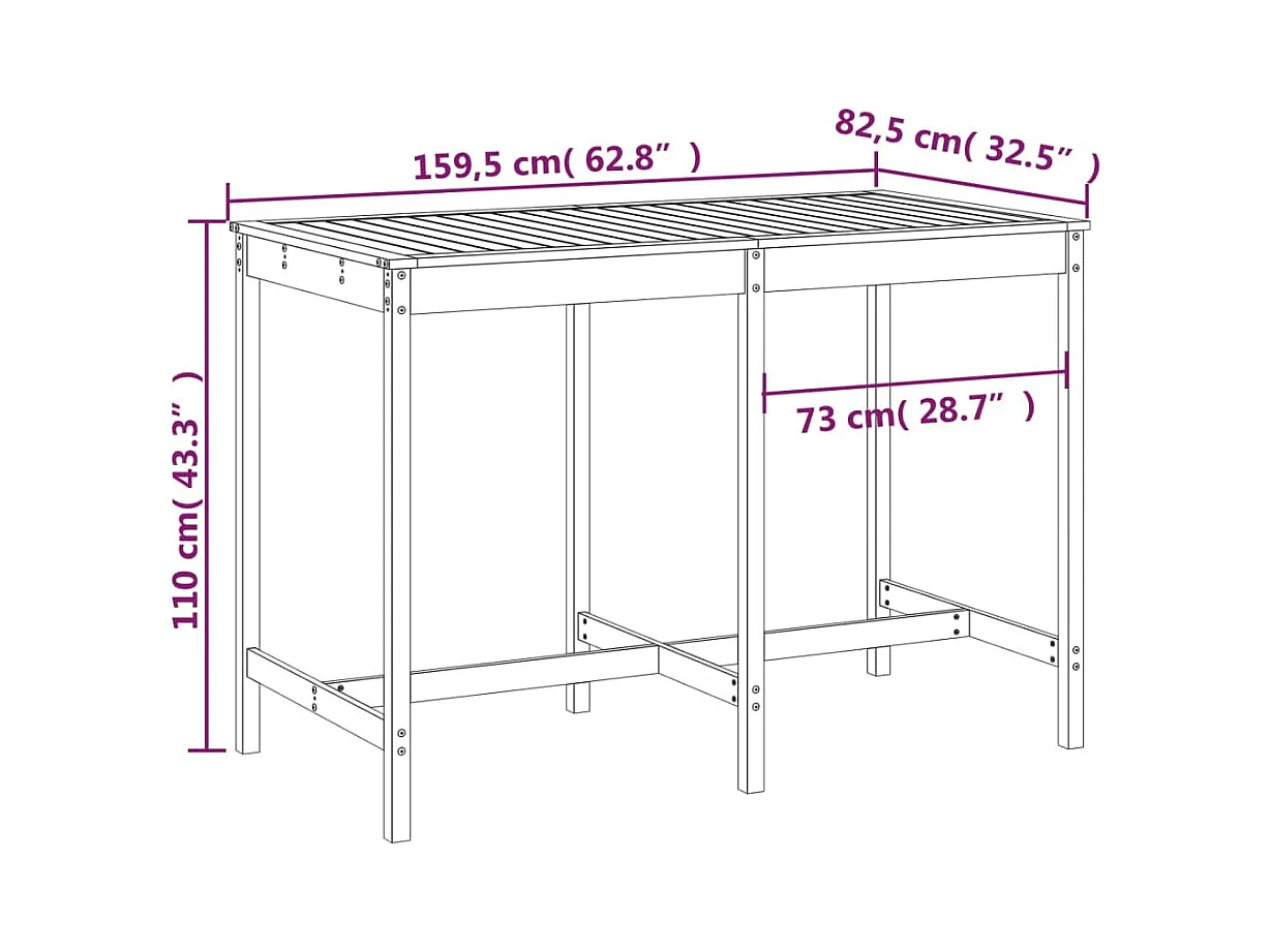 Table de jardin 159,5x82,5x110 cm bois massif de pin