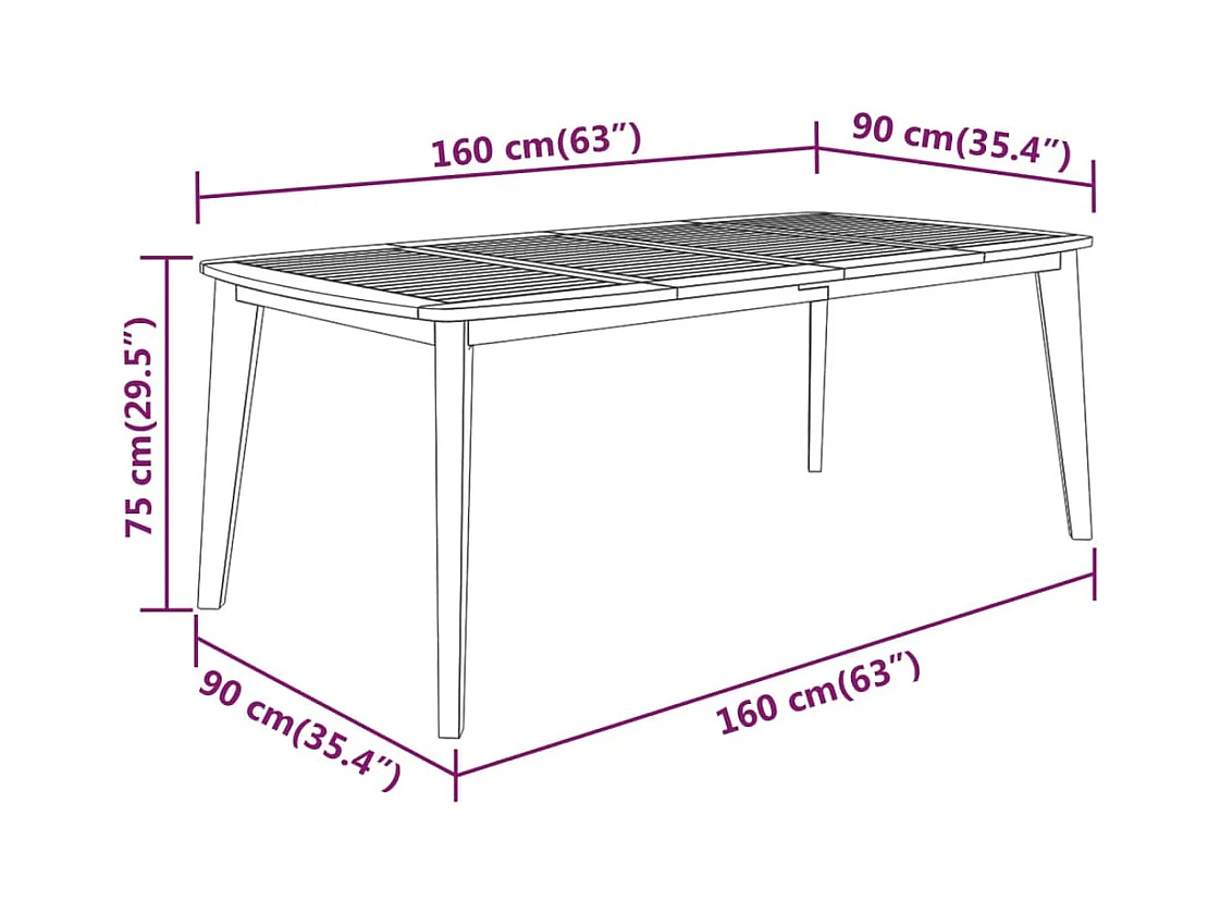 Table de jardin 160x90x75 cm Bois d'acacia solide