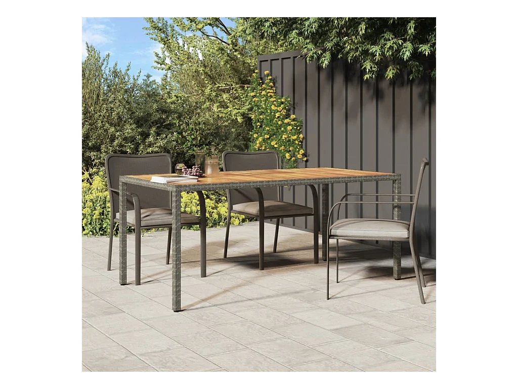 Table de jardin 190x90x75 cm Résine tressée/bois d'acacia Gris GHR57364