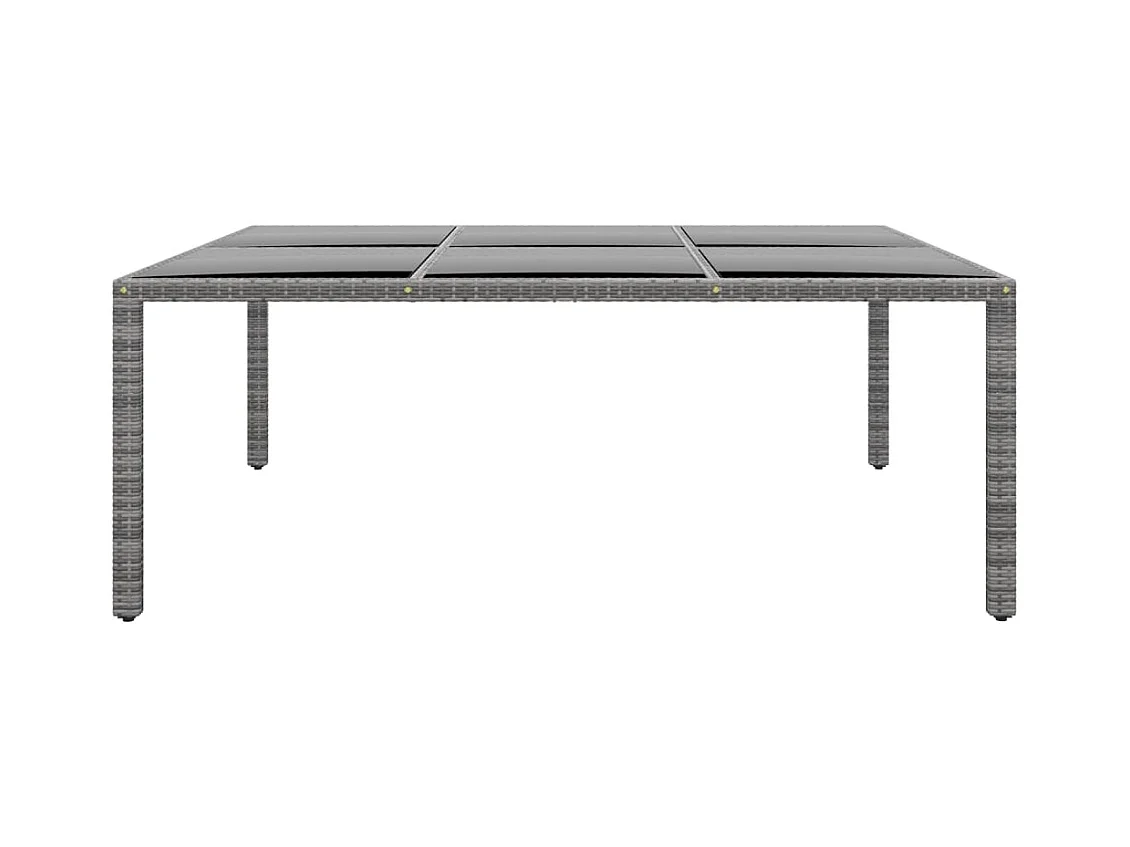 Table de jardin 200x150x75 cm Verre trempé/résine tressée Gris