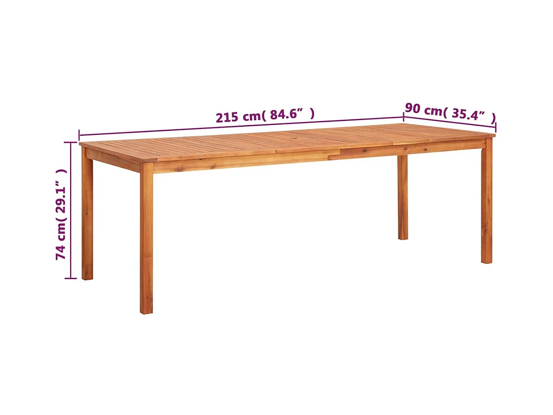 Table de jardin 215x90x74 cm Bois d'acacia massif