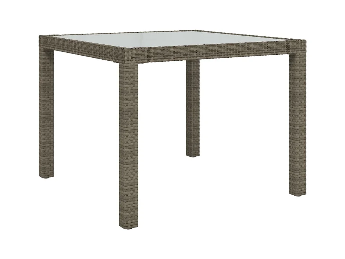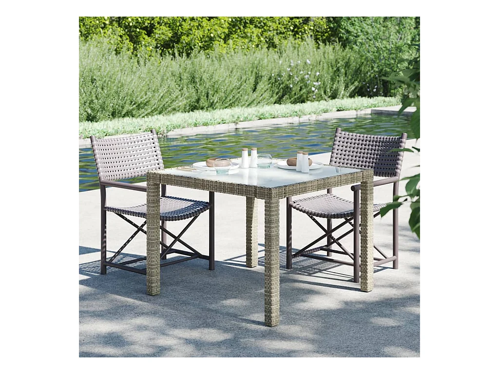 Table de jardin 90x90x75 cm Verre trempé et résine tressée Gris