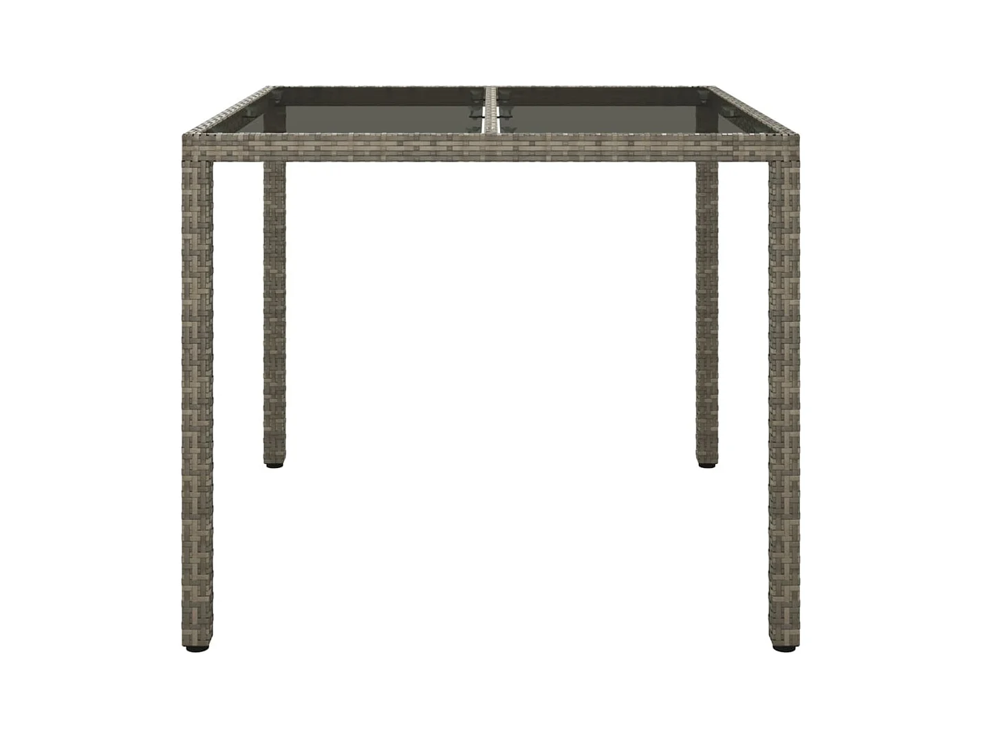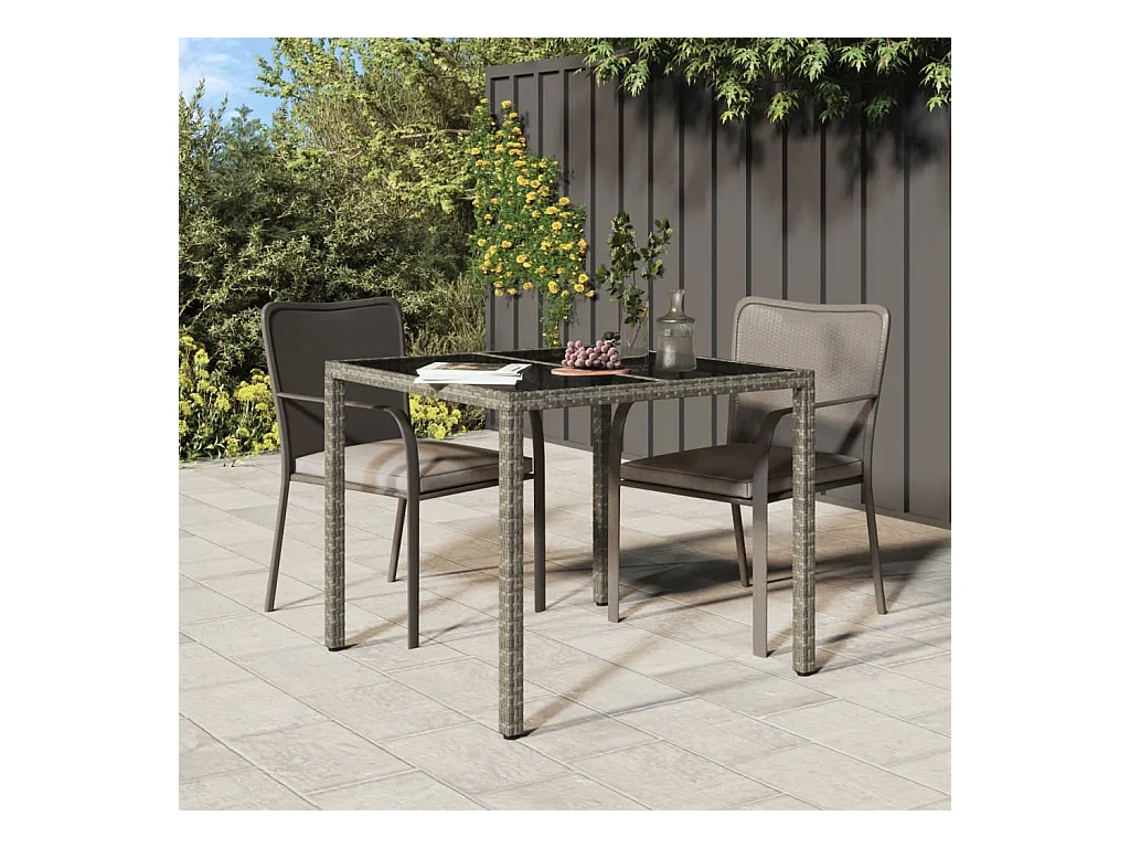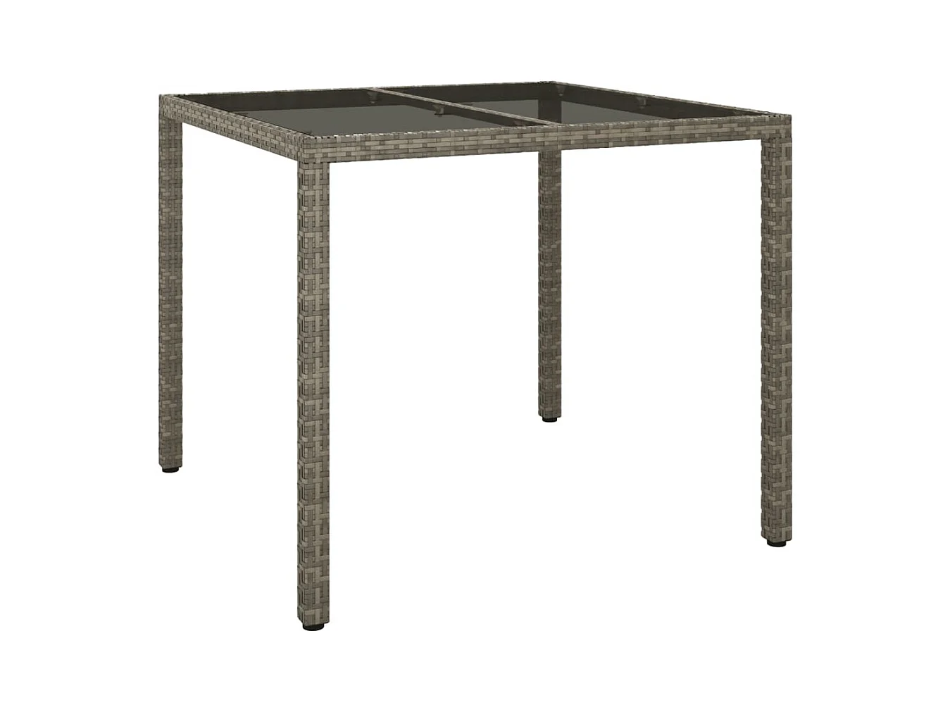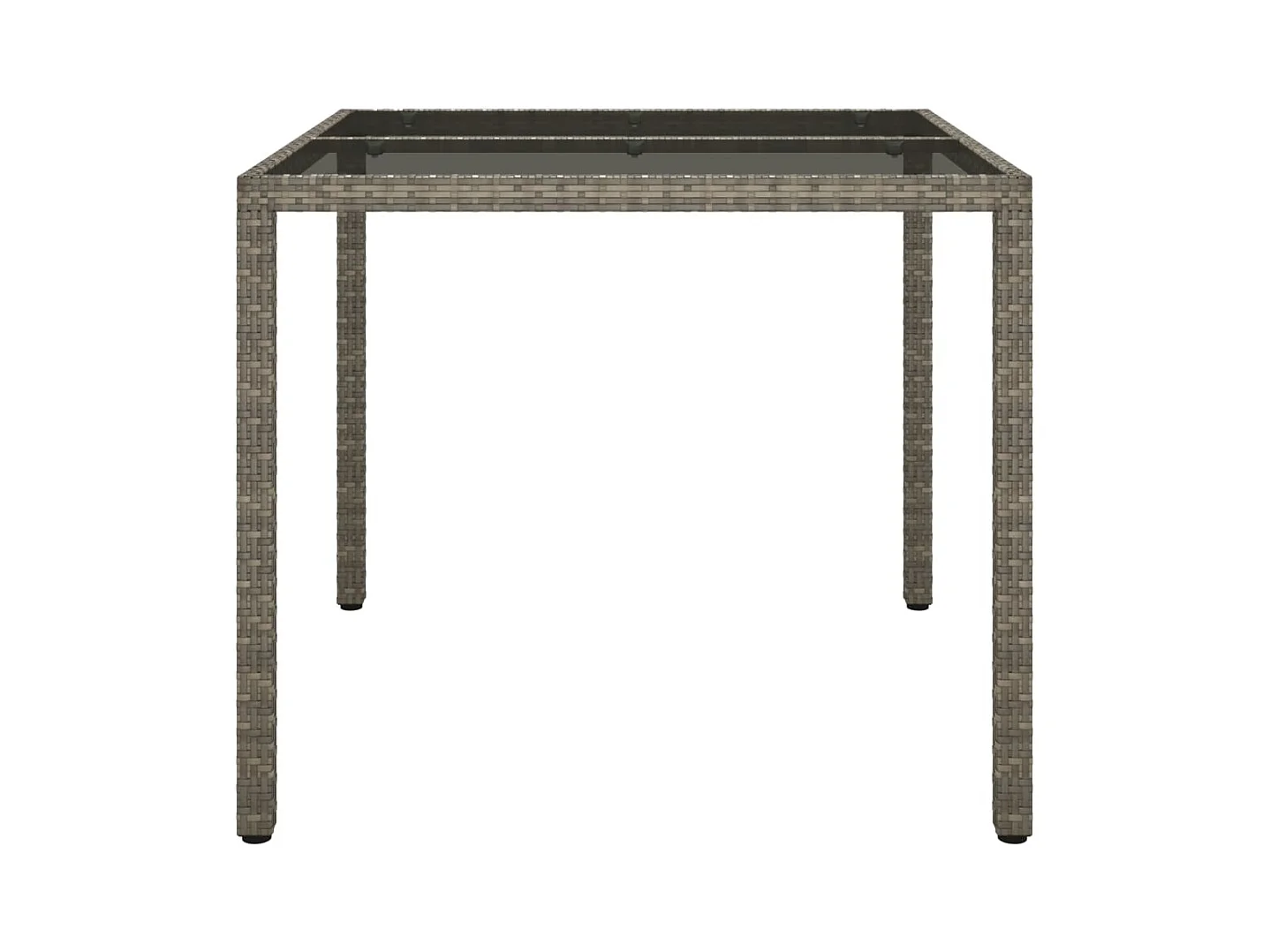 Table de jardin 90x90x75 cm Verre trempé et résine tressée Gris