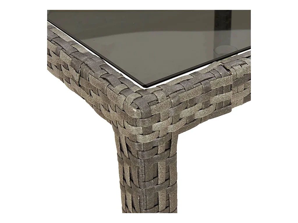 Table de jardin dessus en verre gris 80x80x75 cm résine tressée