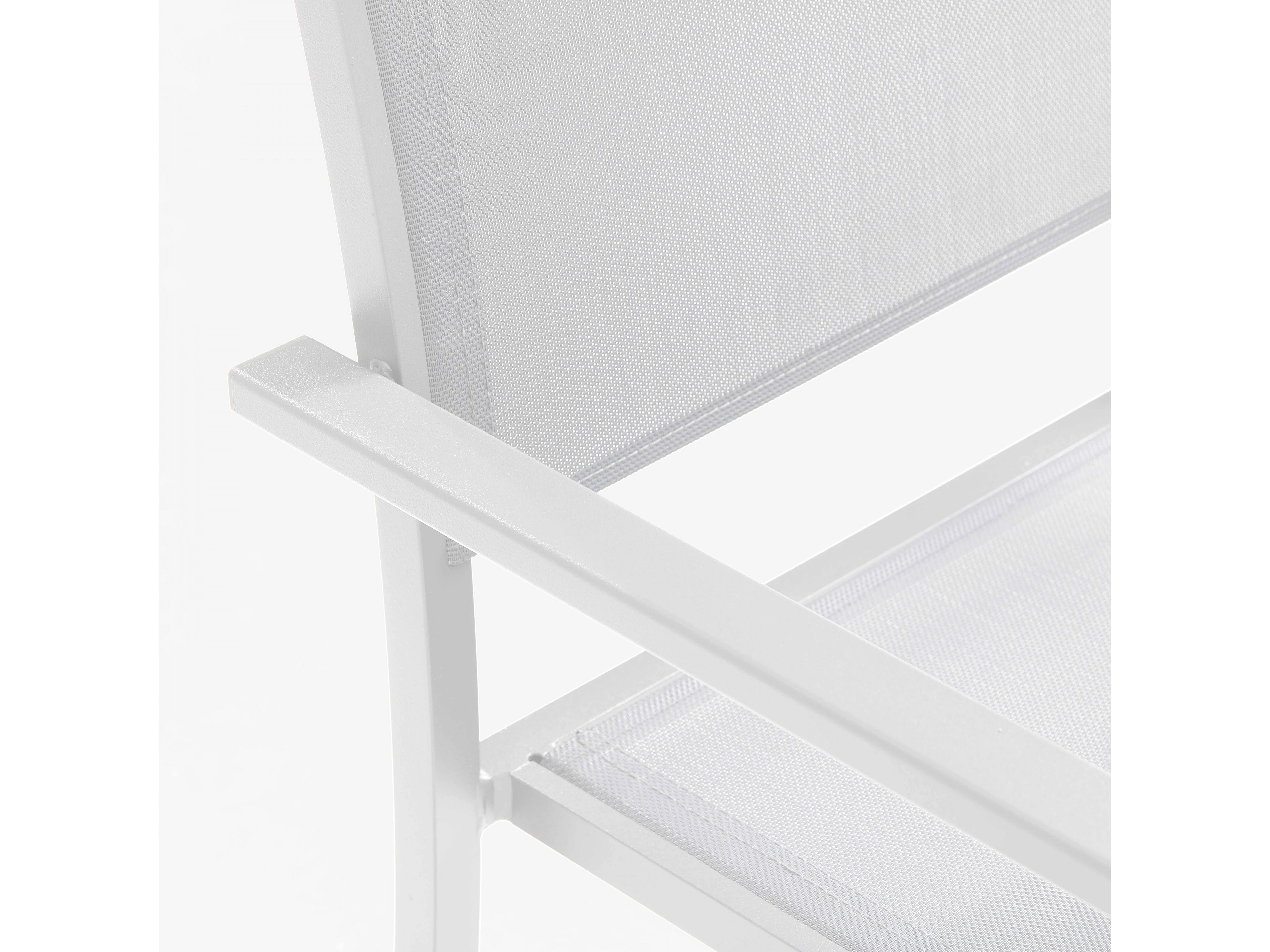 Table de terrasse aluminium et pierre, 6 chaises et 2 fauteuils blanc