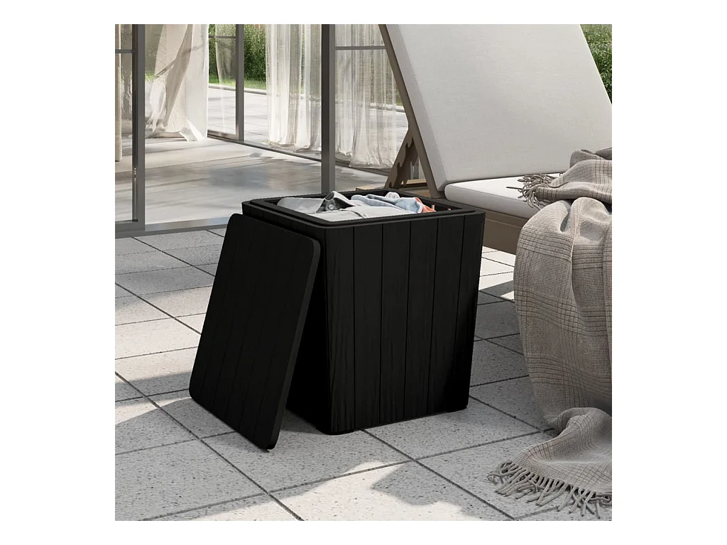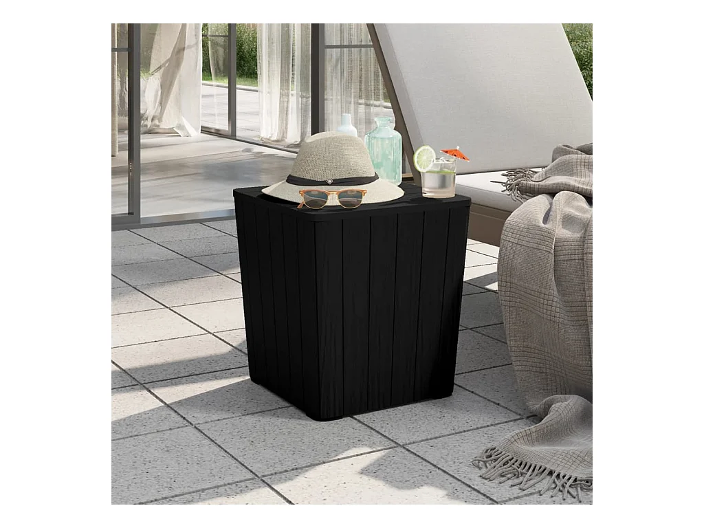 Table de jardin noir 38x38x42 cm résine tressée et bois acacia