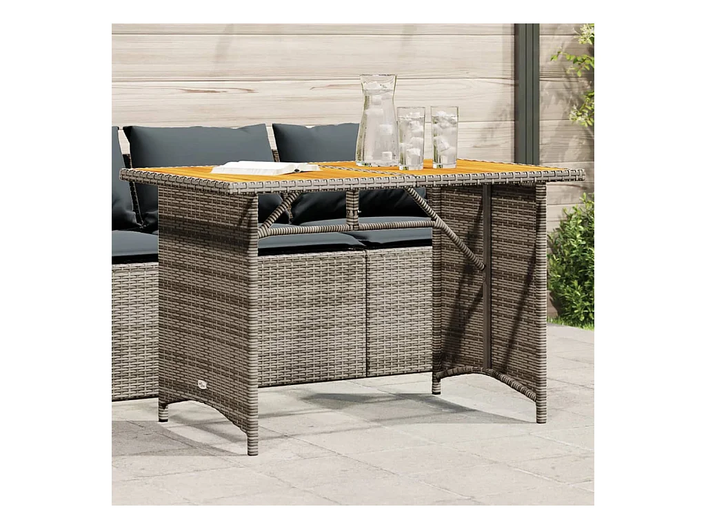 Table de jardin gris 80x80x74 cm résine tressée et bois acacia FR678445