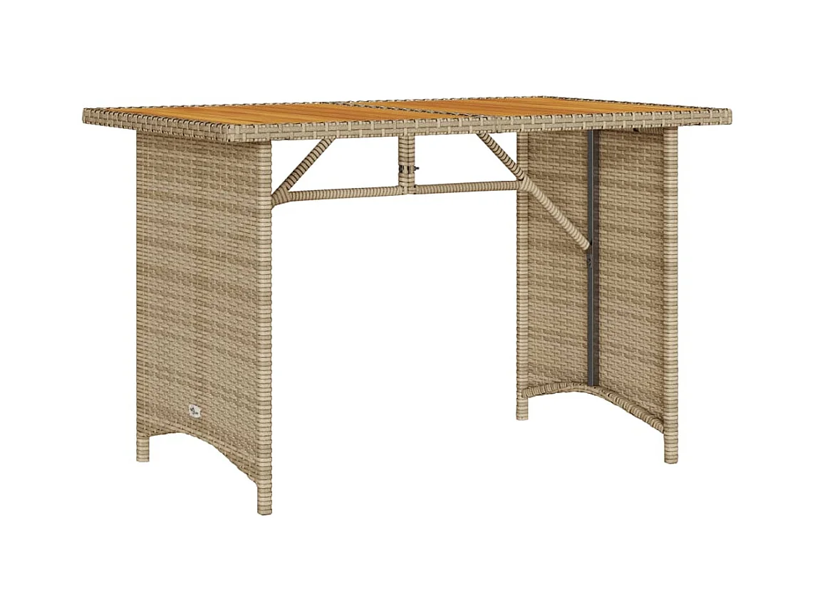 Table de jardin beige 110x110x71 cm résine tressée bois acacia
