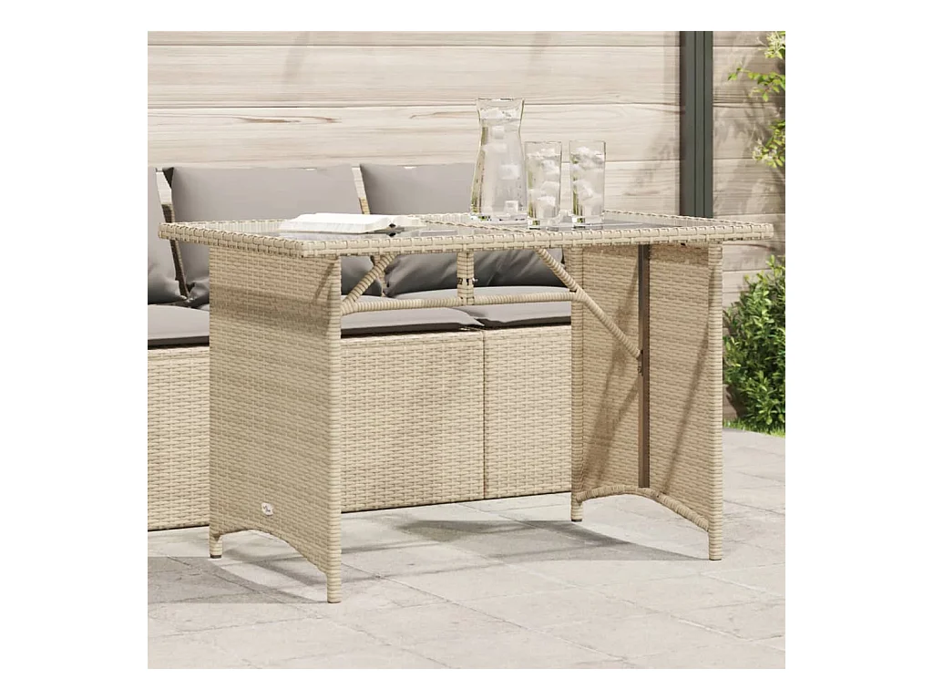 Table de jardin Beige 110x53x72 cm Verre et résine tressée GHR38216