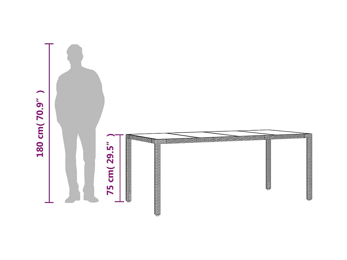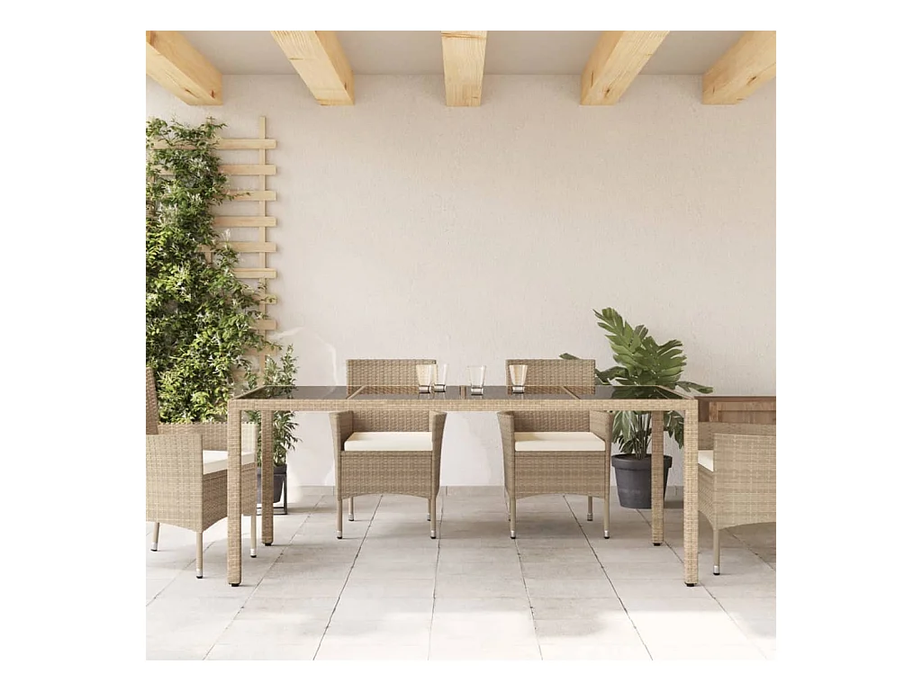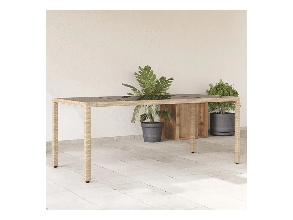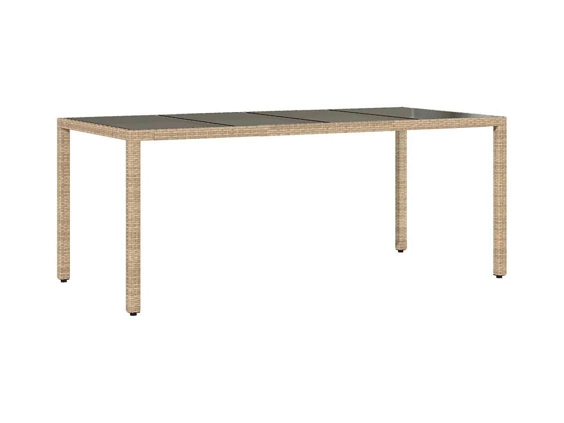 Table de jardin Beige 190x90x75 cm Verre trempé/résine tressée