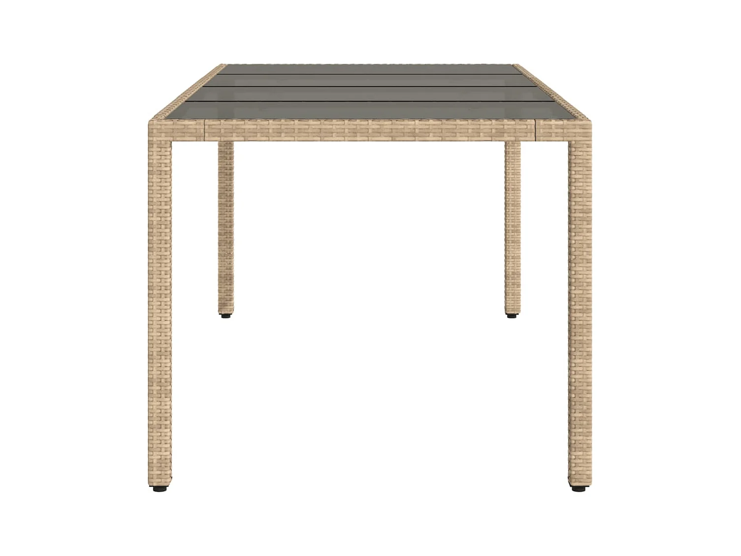 Table de jardin 150x90x75 cm Verre trempé/résine tressée Beige