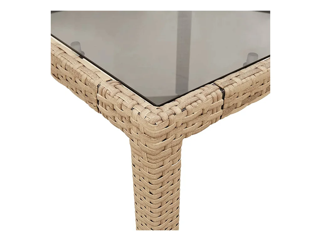 Table de jardin avec dessus en verre beige résine tressée
