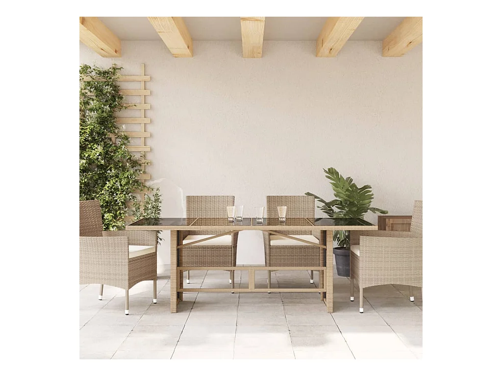 Table de jardin dessus en verre beige 190x80x74 cm FR630129