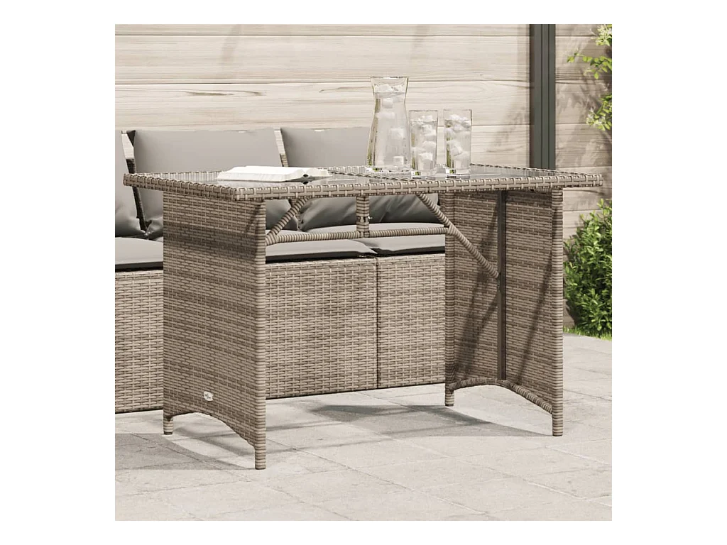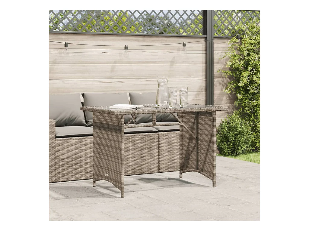 Table de jardin et dessus en verre gris clair 110x68x70cm rotin FR274659